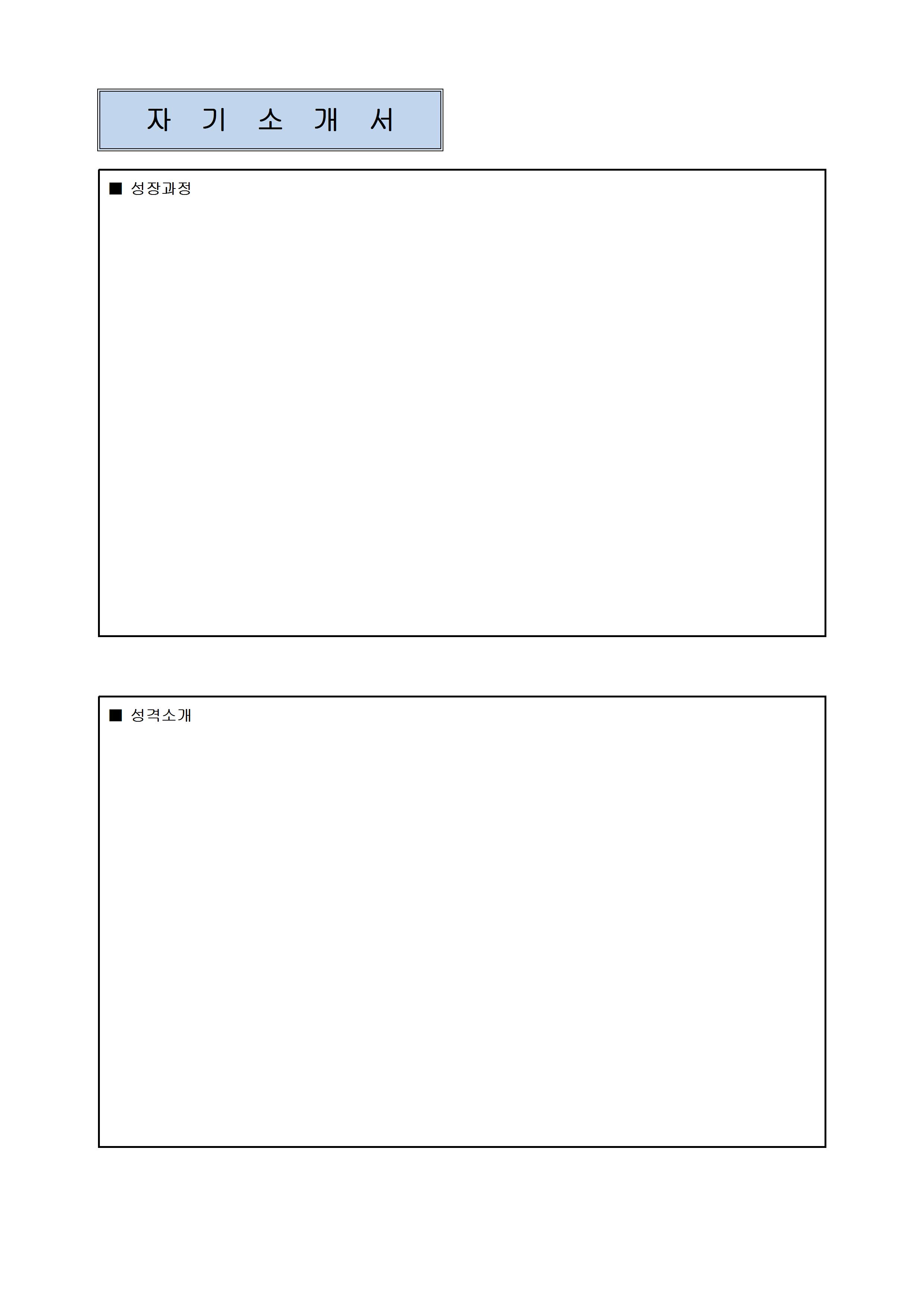 여러 형태로 된 이력서 양식을 보다보니 어느덧 네 번째 디자인이네요. 다양한 구성으로 된 이력서를 보는 재미도 나름 쏠쏠한 것 같습니다. 자 이 이력서는 조금더 상세한 사항을 기재할 수 있는 칸들이 많이 있습니다. 신입, 경력 등을 기재하는 지원구분이 있고 지원 분야를 작성하는 지원 부분, 희망연봉을 기재하는 칸이 각각 가장 위에 작은 표로 구성되어 있고요. 그 밑에 사진을 첨부하는 란, 성명과 주민등록번호, 실거주지를 작성하는 주소, 자택과 이동전화 및 이메일을 작성하는 연락처 등이 기본 인적사항 표로 구성되어 있습니다. 그 밑에는 학교명과 재학기간, 전공과 학교 소재지를 작성하는 학력사항, 회사명과 근무기간, 담당업무와 퇴직사유를 적는 경력사항, 간단한 문서 작성과 스프레드시트, 프레젠테이션, 외국어 등의 활용도를 적는 활용능력 칸, 자격증 종류와 취득일 및 발행처를 작성하는 자격면허 부분이 있습니다. 제일 밑에는 가족과의 관계와 성명, 나이 및 직업과 근무처, 동거여부를 적는 가족 사항 칸과 그 외에 종교외 취미, 혈액형과 신장, 시력 등을 적는 칸도 있네요. 너무 상세한 내용을 적는게 꺼려지시는 분들도 있으실 것 같아 지원하는 기업이나 단체에서 필요할 것 같은 부분만 작성하거나 표 자체를 삭제하셔서 수정하시면 좋을 것 같네요. 그 다음 이어지는 것이 바로 자기소개 페이지인데요. 성장과정과 성격, 특기나 경력사항, 지원동기 및 포부 등을 총 4개의 칸에 각각 작성하시면 됩니다.