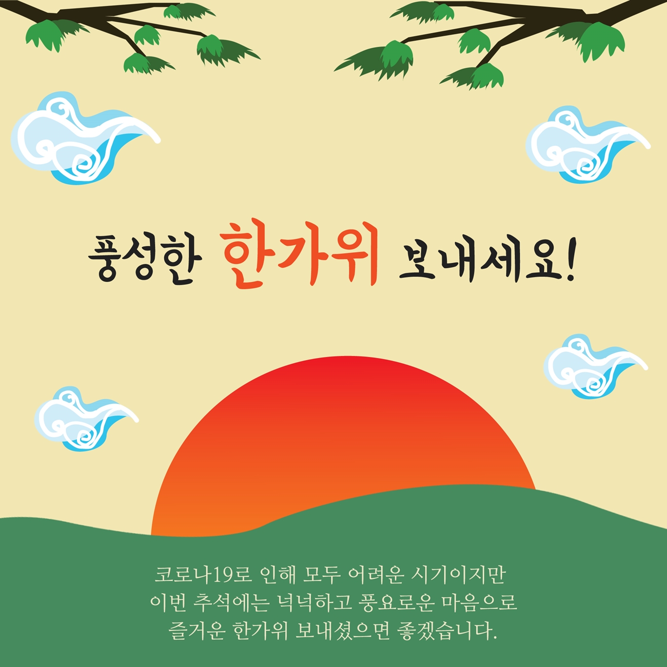 ■ 코로나 19로 인해 모두 어려운 시기이지만 이번 추석에는 넉넉하고 풍요로운 마음으로 즐거운 한가위 보내셨으면 좋겠습니다.