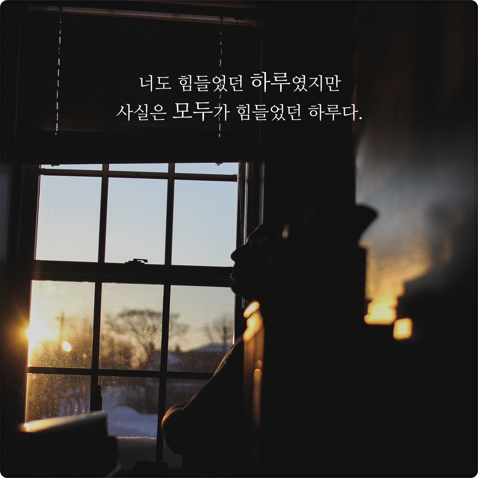 힘들고 어렵다고 느끼는 기준치는 사람마다 다 다르다. 상대방이 보기엔 별것도 아닌 상황에 힘들다고 토로하는 경우도 있고 아니면 남들이 보이기엔 너무나 어려운 상황들을 열심히 딛고 있지만 정작 본인은 힘들다고 표현하지 않고 오히려 묵묵하게 자신의 어려운 시기를 이겨내는 경우도 있다. 이 글을 읽는 여러분들이라면 후자가 되었으면 한다.