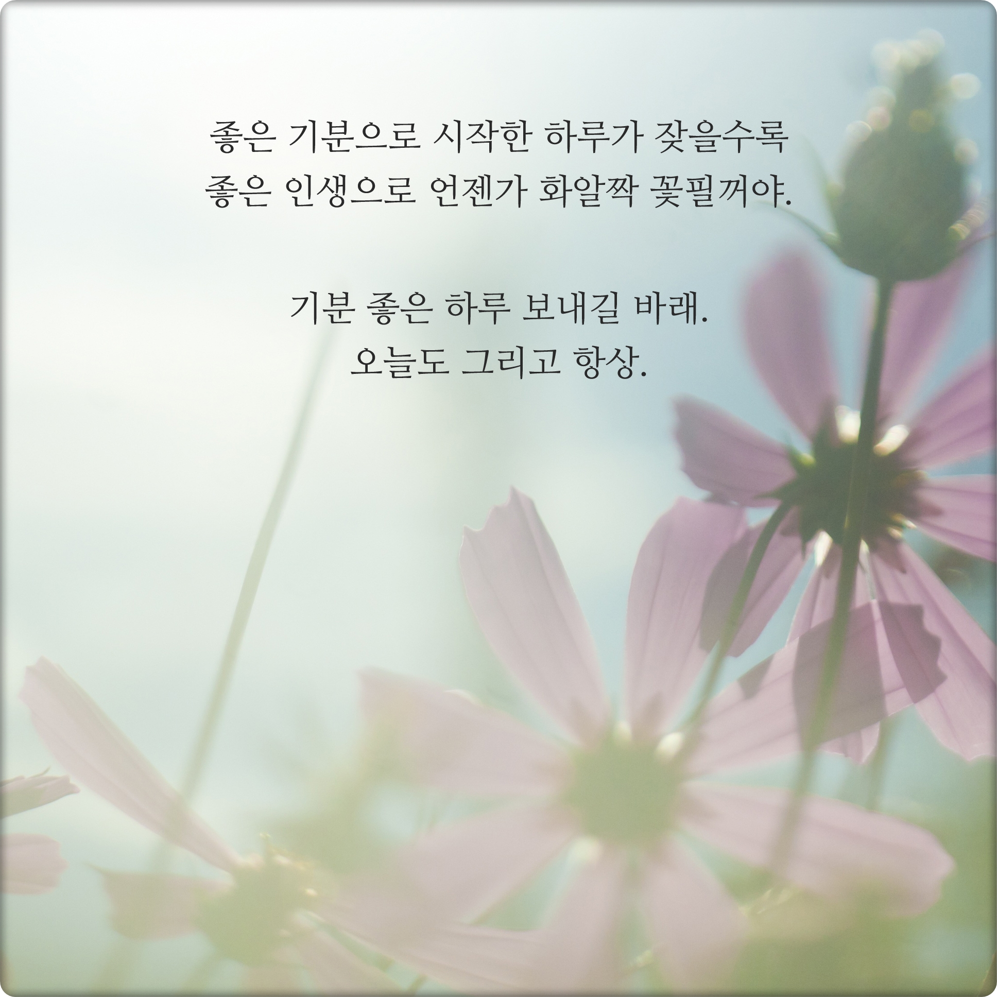 좋은 하루에 관한 글귀들을 써봤다. 이번에는 제일 하단부에 녹음한 영상을 스틸 형식으로 하여 나레이션도 같이 넣어봤다. 요즘에 어김없이 힘든 시기에 놓여있어 이런 문구나 글귀들로 하여금 조금이나마 힘을 얻어보고 싶고 같은 힘든 상황속에서도 이 곳에 방문하신 분들 분들께 조금이라도 힘이 되었으면 하는 바램으로 오늘 좋은 하루에 관한 글귀를 시작해보려고 한다.