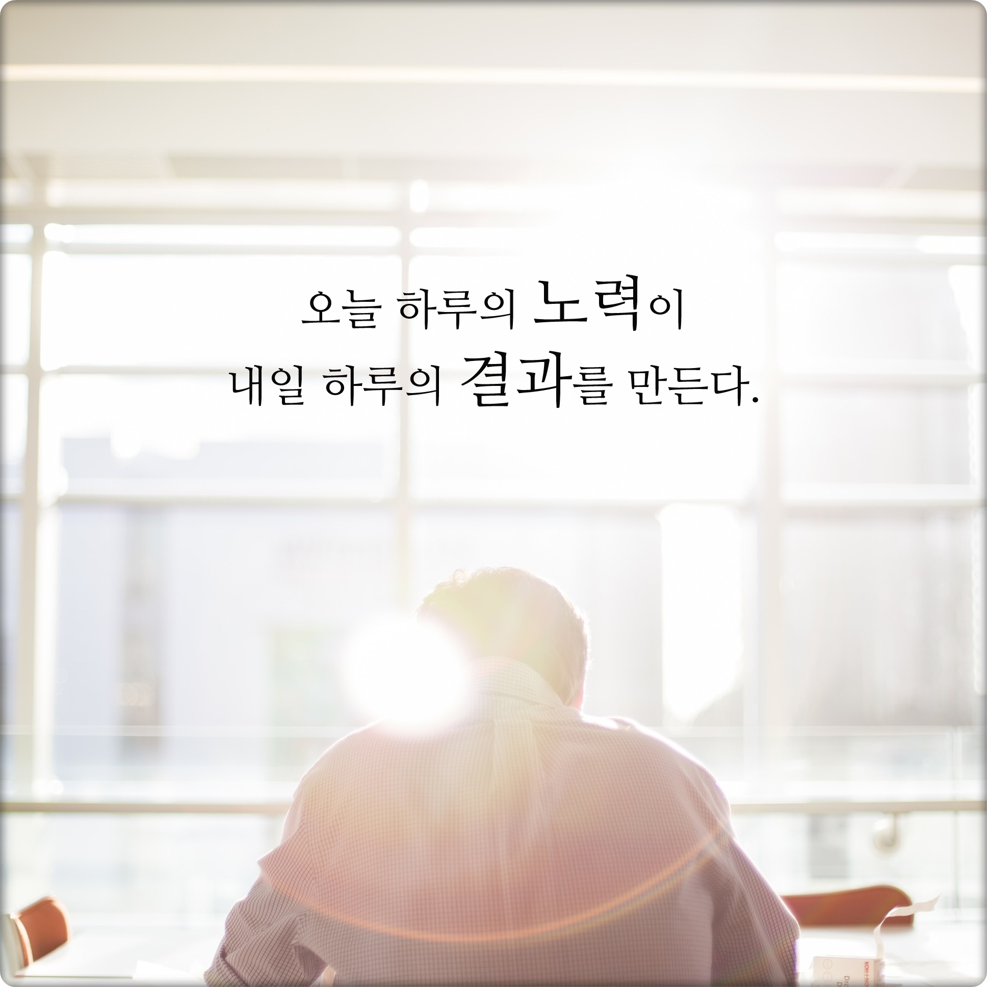 노력이라는 것은 때론 필수적으로 필요한 것은 아니지만 내가 어떻게 얼마만큼 하는지에 따라서 내일 또는 훗날의 미래는 분명 달라질 수 있다. 때로는 내가 현재 목표를 위해서 하고 있는 노력들은 보다 효율적이어야 하며, 최선의 방법을 접목하며 최선의 결과를 이루어내야한다. 설령 그 결과들이 내가 기대했던 바에 못미칠지언정 난 최선을 다했다고 자부하며 확신할 수 있다면 후회란 결코 없을 것이다.