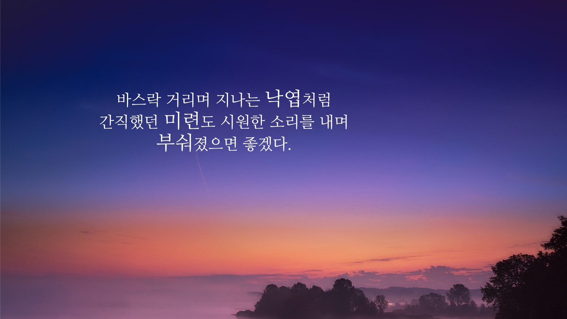 그래서 모든 미련은 버려두고 이번 가을에는 긍정적으로 생각하며 하던 일도 열심히 잘 해서 좋은 결과로 이어지길 바랍니다. 부디 이번 가을에는 행복하고 즐거운 일이 가득했으면 좋겠습니다.