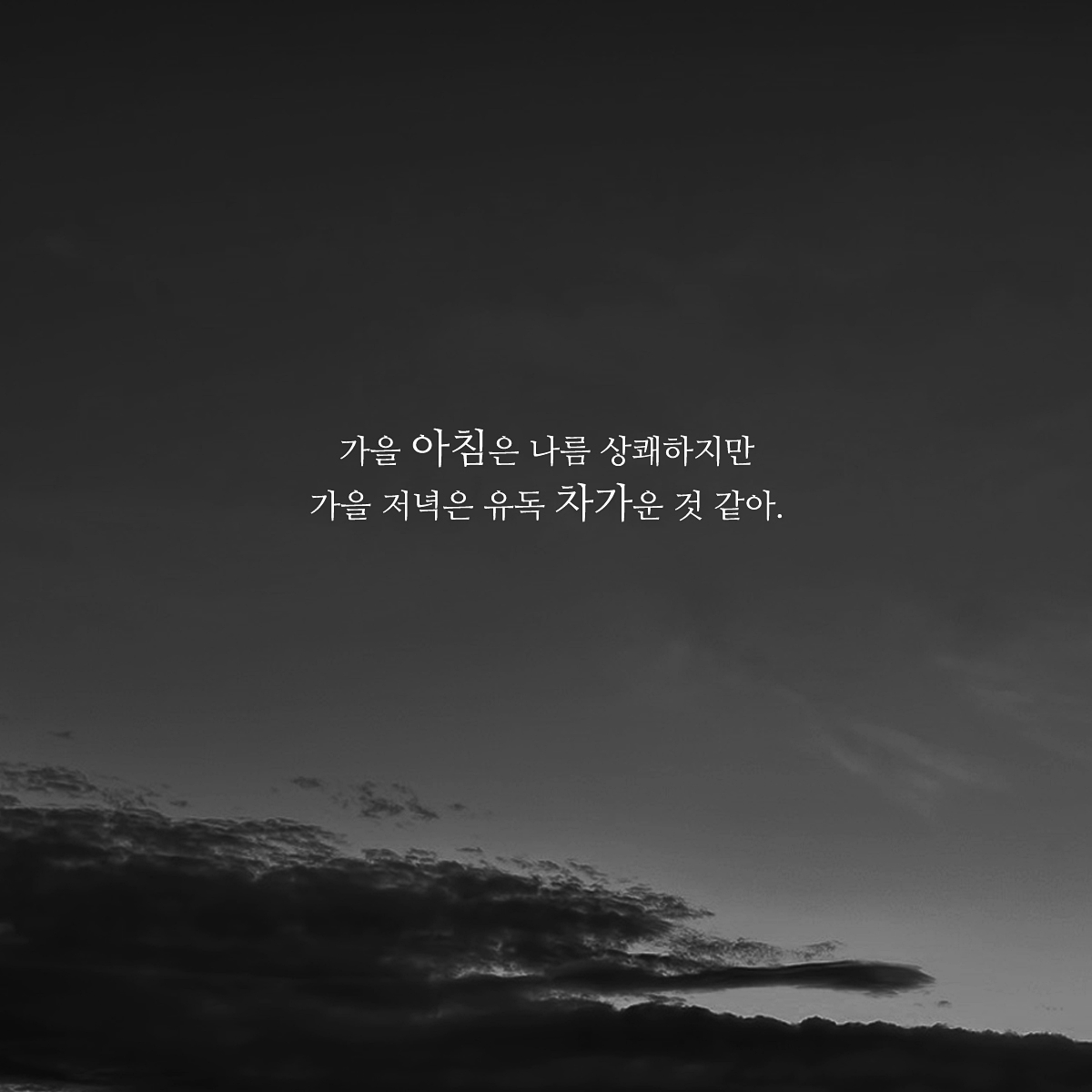 가을 아침은 나름 상쾌합니다. 하지만 저녁이 되면 유독 차갑다는 느낌이 드는 것은 저만 그런 것일까요? 나름 상쾌하게 시작했었던 날도 하루의 바쁘고 힘든 일과를 겪고 나서 몸도 마음도 살짝은 지쳐있기 때문은 아닐까 싶습니다. 그래서 유독 쓸쓸해지고 차가워지는 감성이 듭니다.