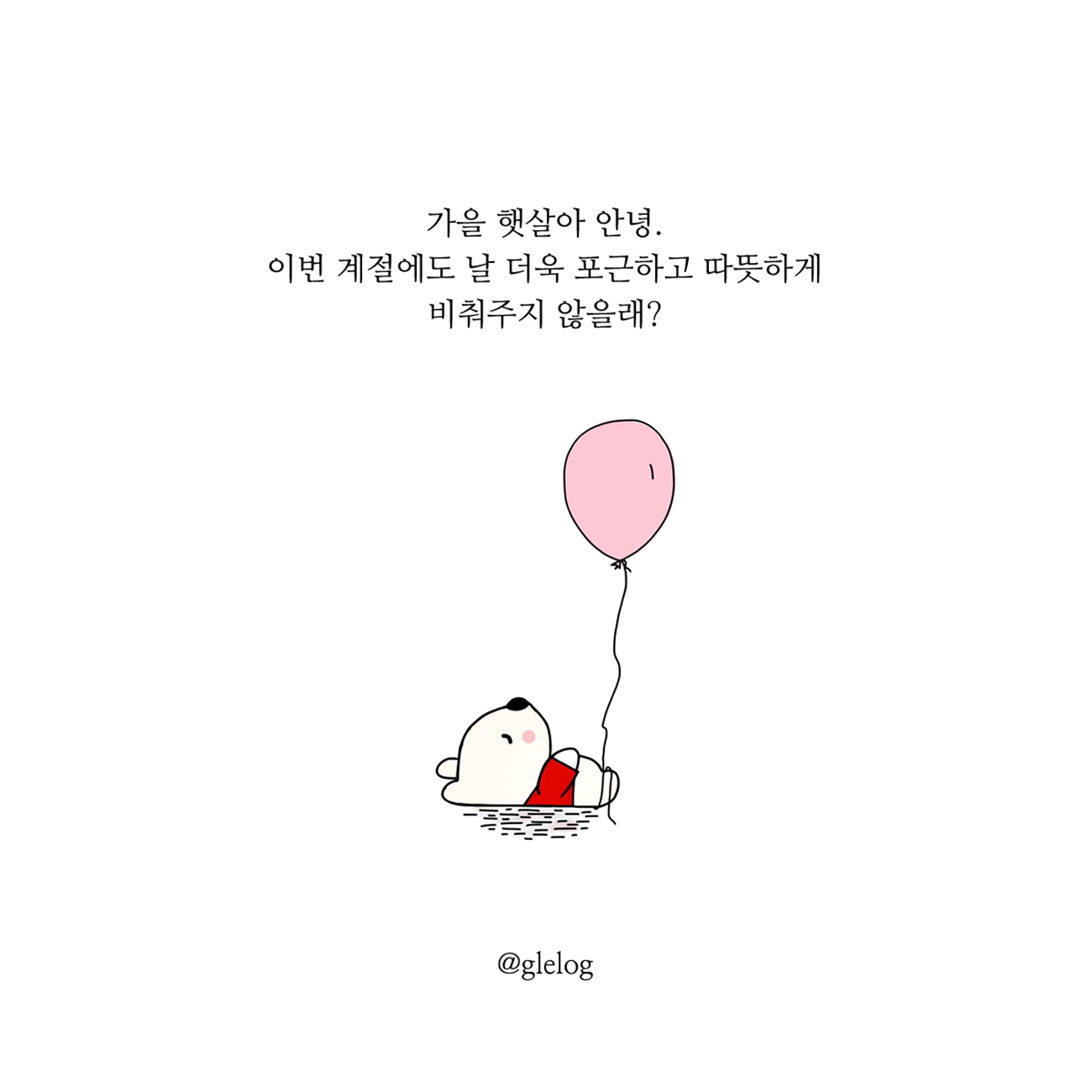 ■ 선선한 가을 바람이 다가와도 가을 햇살은 따뜻하게 느껴질 수 있는 것처럼 이 세상은 언제나 내가 느끼는 대로 마음먹는 대로 생각하고 살아가게 되는 것 같습니다. 비록 모두가 힘들고 어려운 시기이지만 포근하게 느껴지는 햇살처럼, 마음만큼은 늘 따뜻하게 갖으셨으면 좋겠습니다.