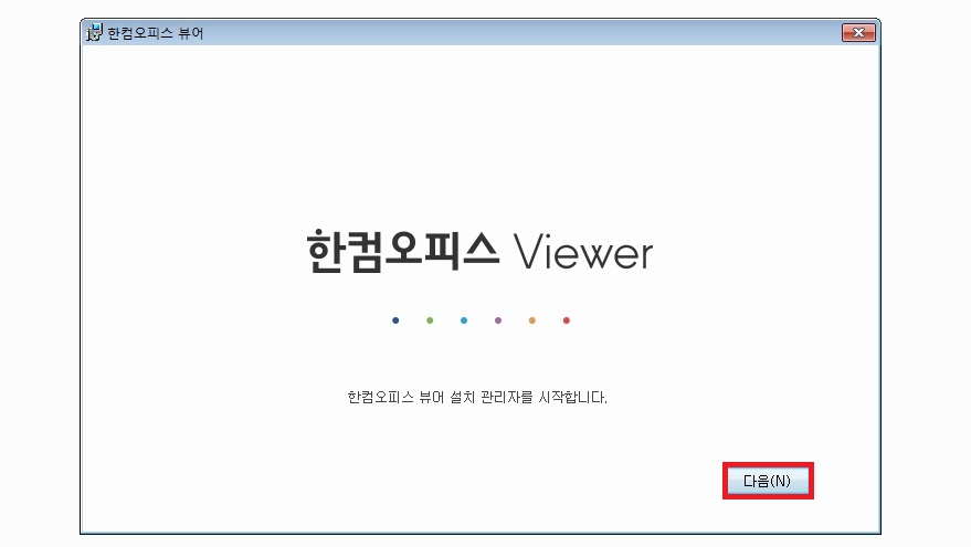 정확한 명칭은 '한컴오피스 뷰어'입니다. 해당 화면에서 '다음'을 눌러서 설치를 진행합니다.