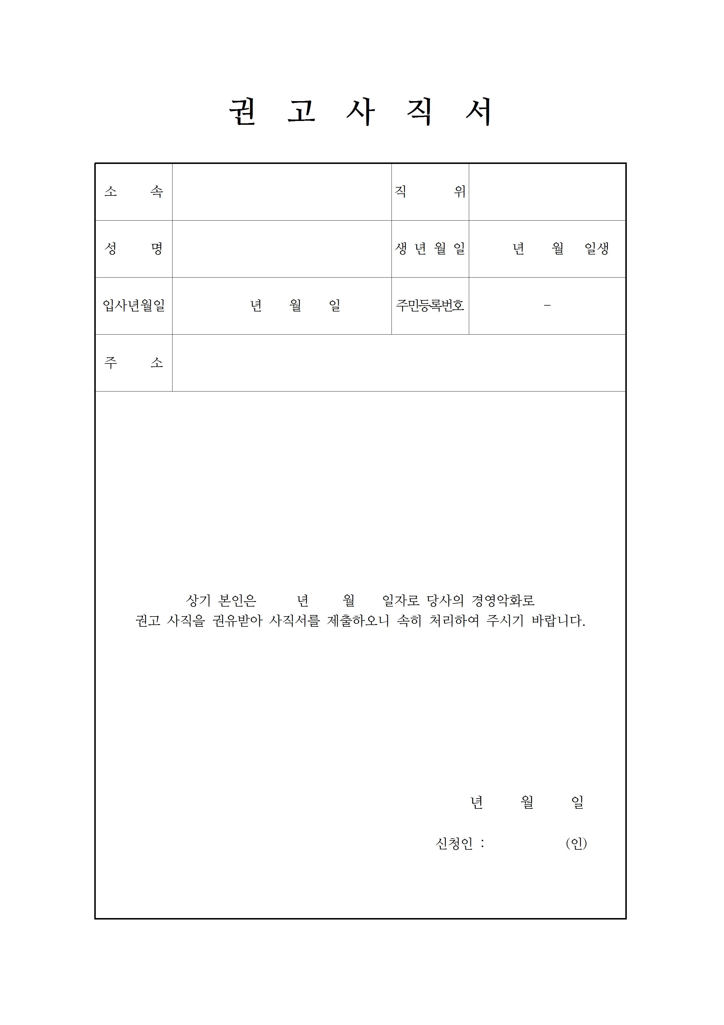 권고 사직서 및 일반 사직서 (퇴사서 양식)