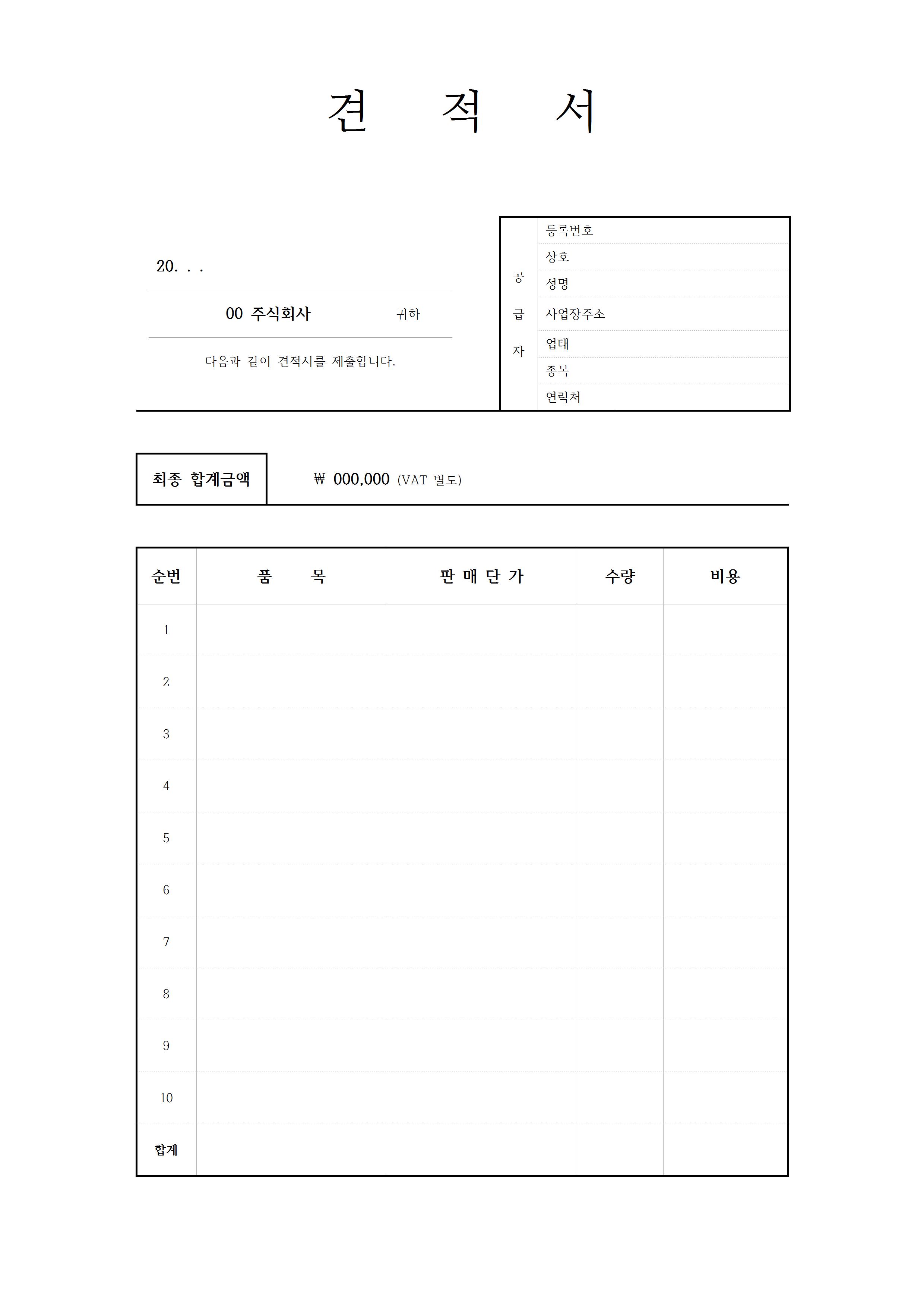 | 깔끔한 견적서 양식 (1) | 2020.11.06 |