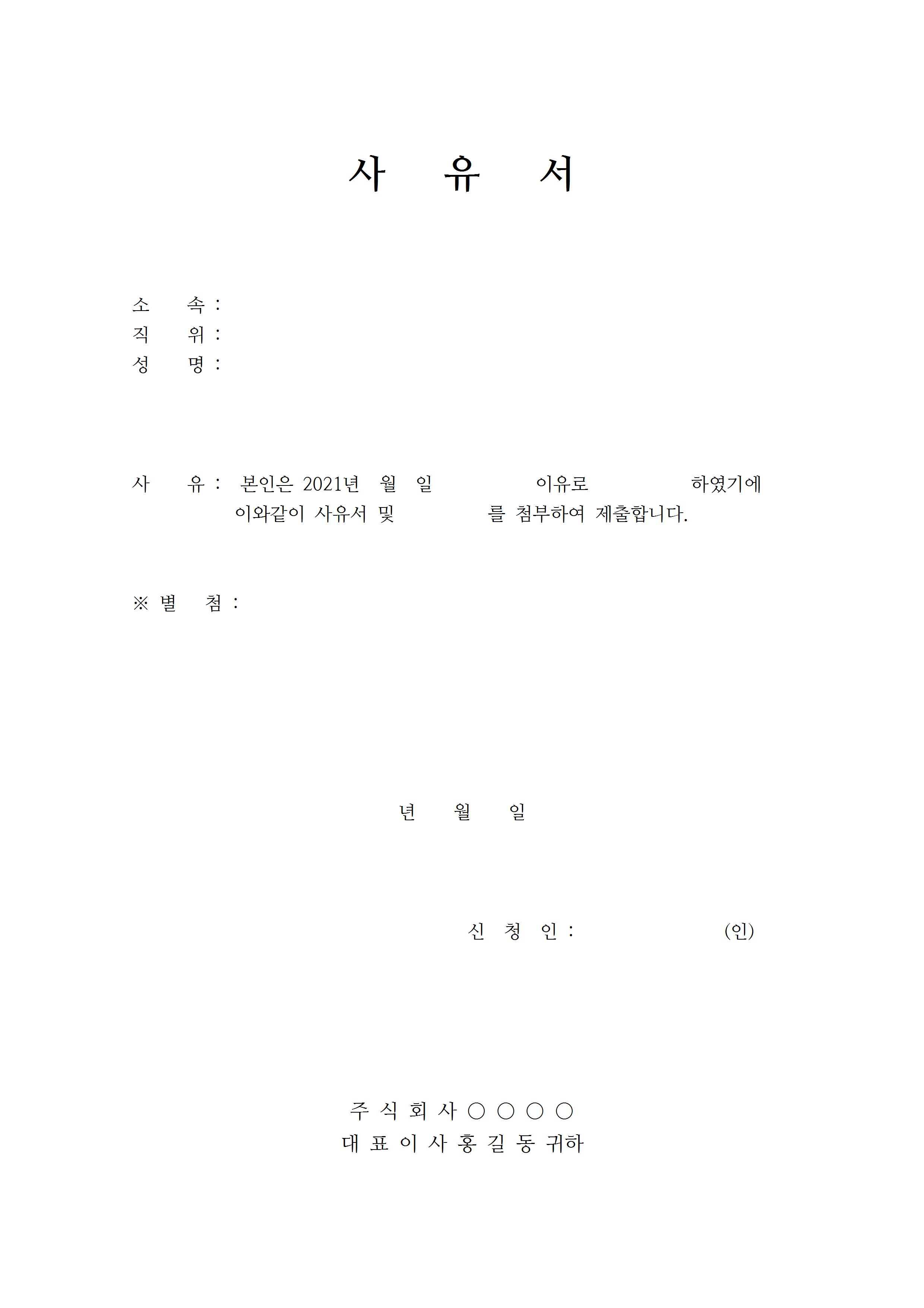 1 일반 사유서 양식