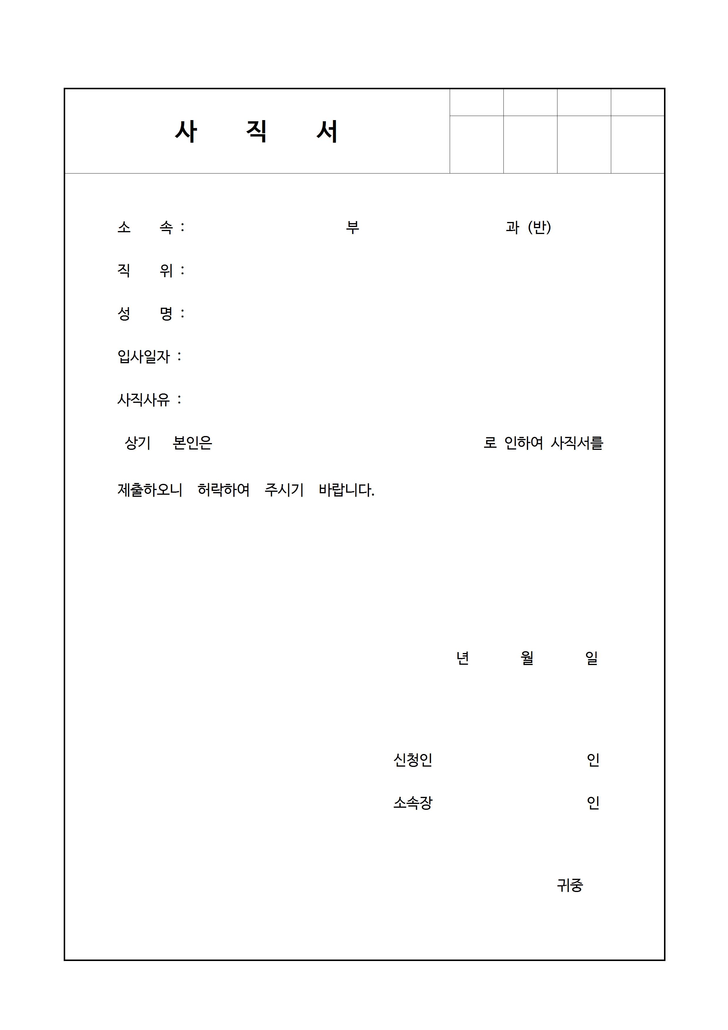 사직서 양식 다운로드 hwp word pdf 엑셀 5종 - glelog.net