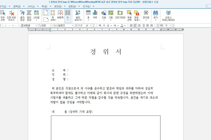 사건 사고 경위서 양식 hwp 무료 다운받을 수 있는 한글 파일을 첨부했습니다.