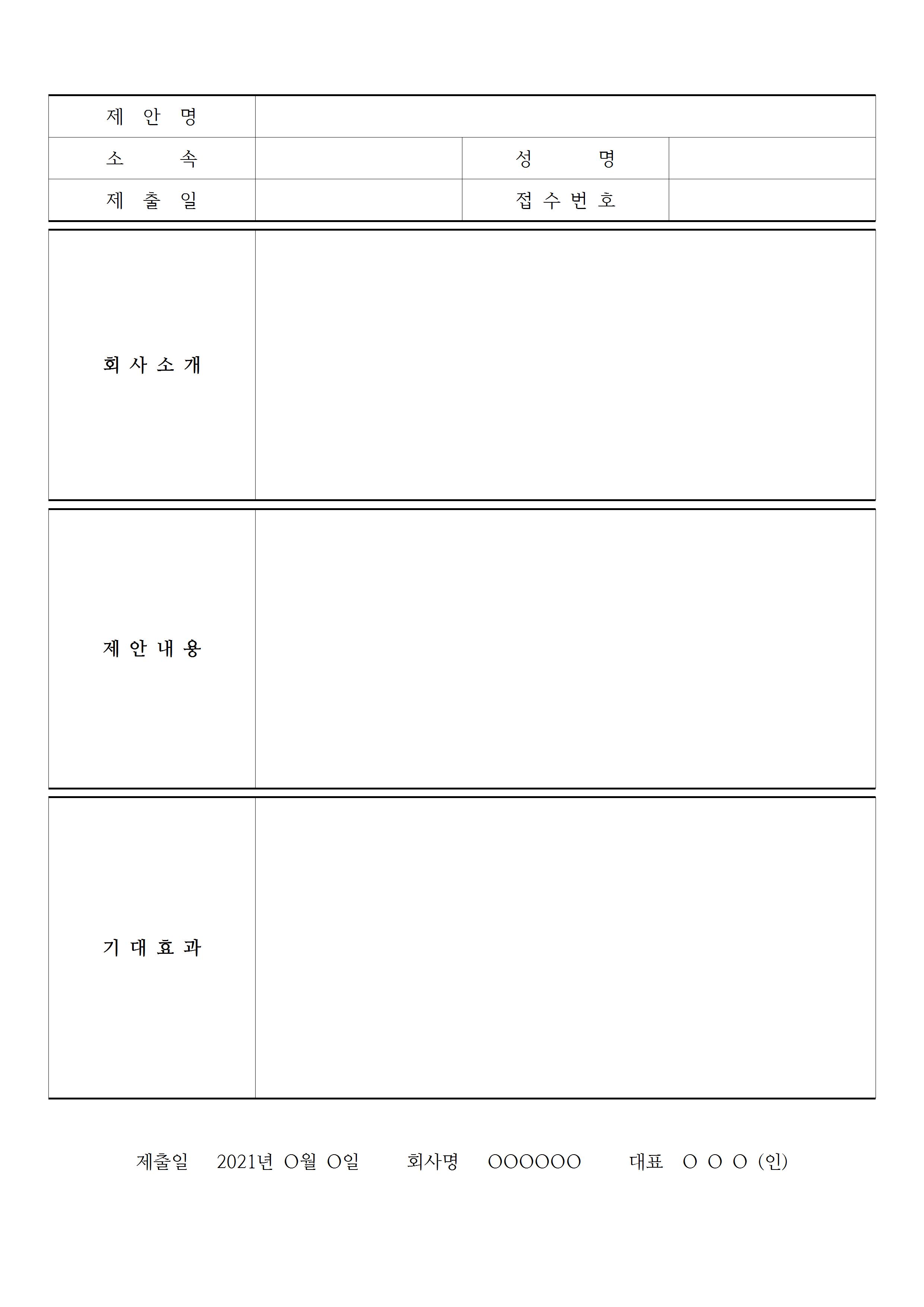파일은 사업제안서와 업무 개선 제안서 두가지이지만 입점, 입찰, 투자, 상품, 납품, 정책, 후원 등의 서식으로 용도와 쓰임새를 바꿔서 활용하셔도 됩니다.