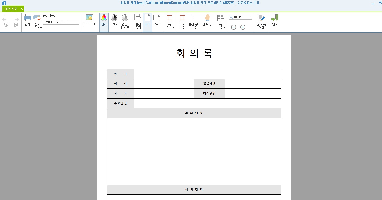 회의록 양식 무료 다운이 가능한 hwp 파일 모음입니다.