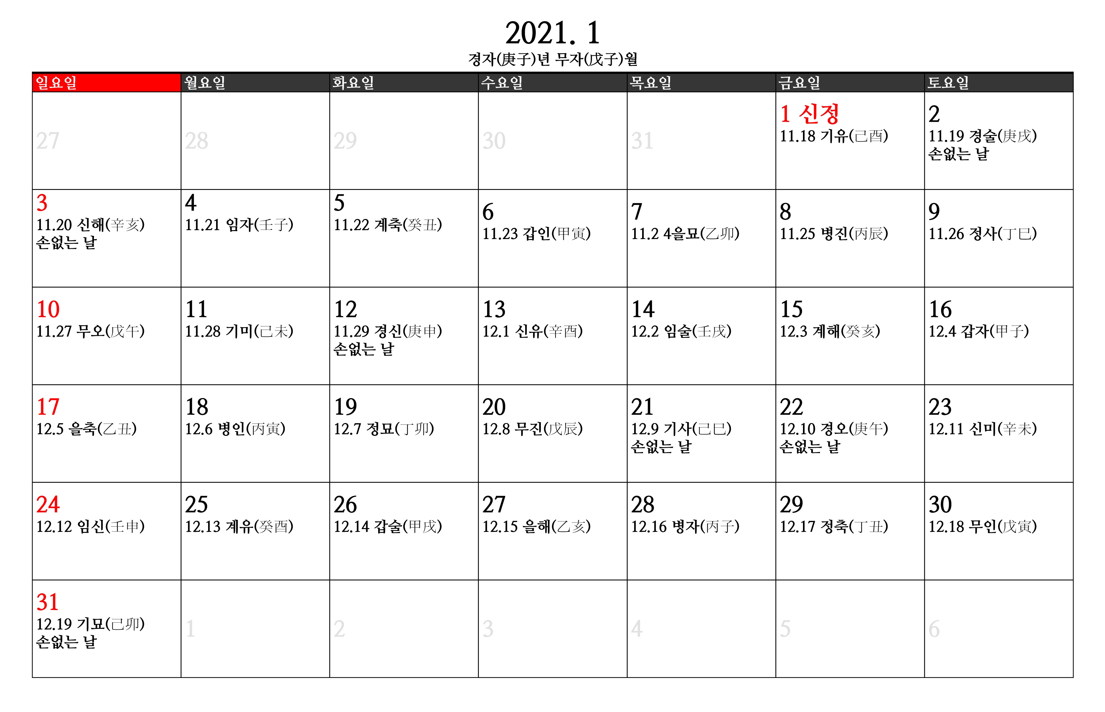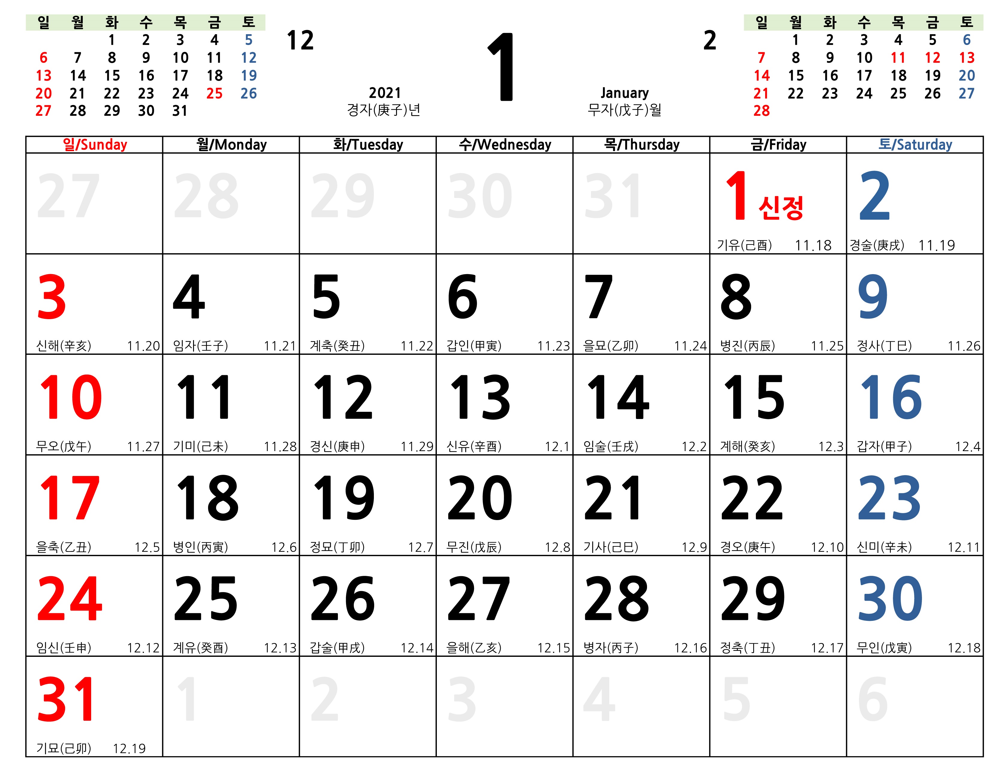 | 2021년 1월 달력 한글 엑셀 프린트 (0) | 2020.12.31 |