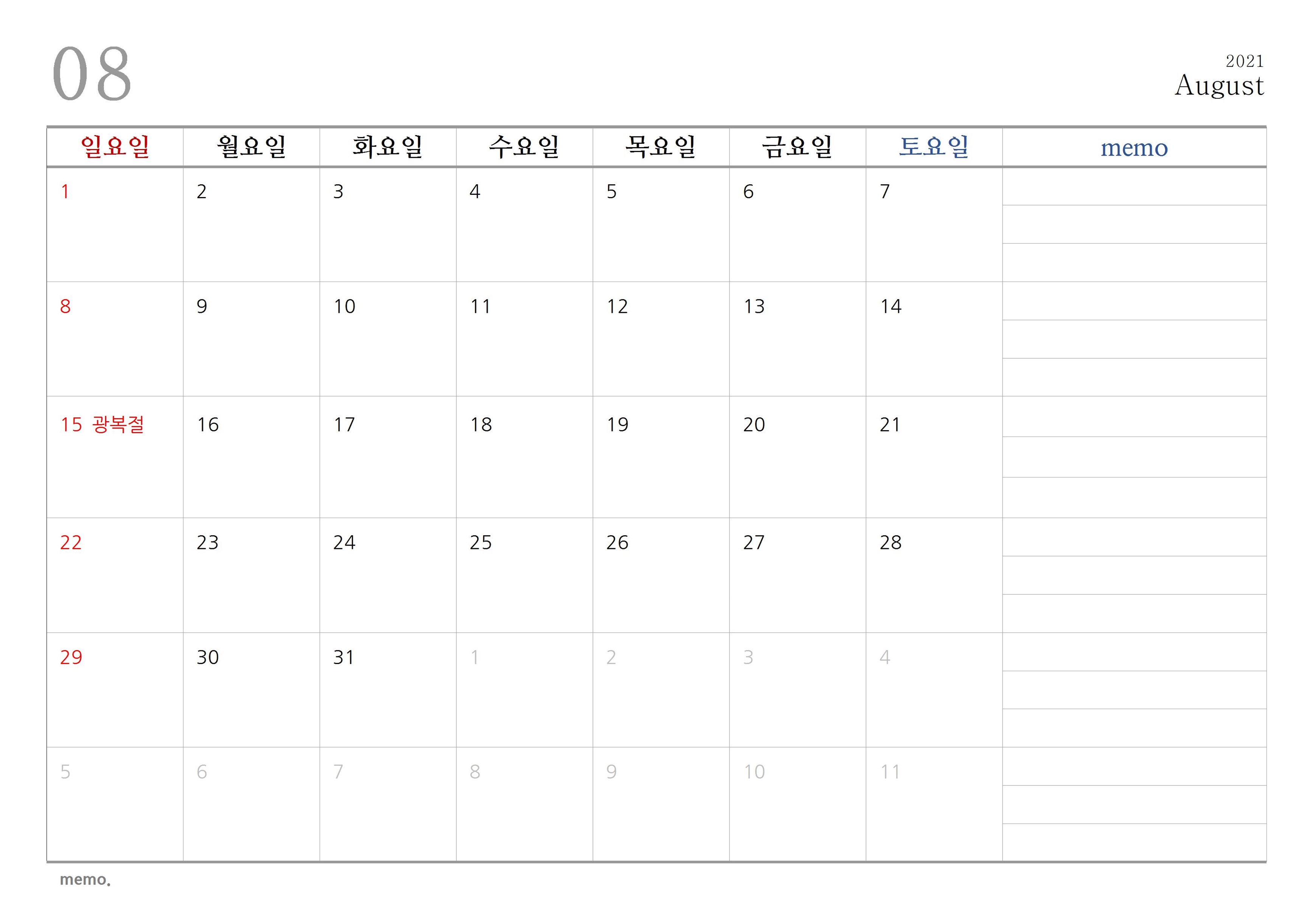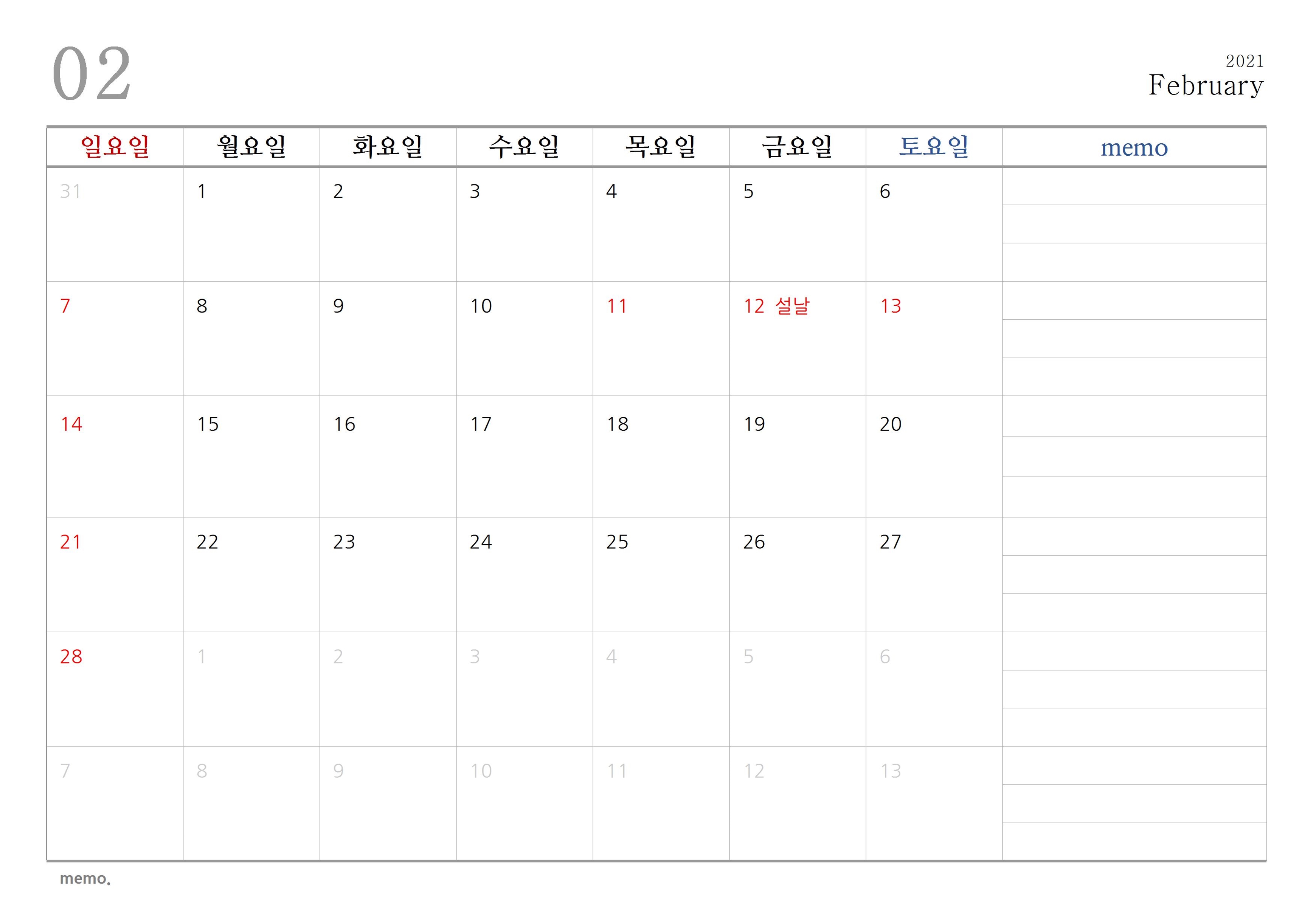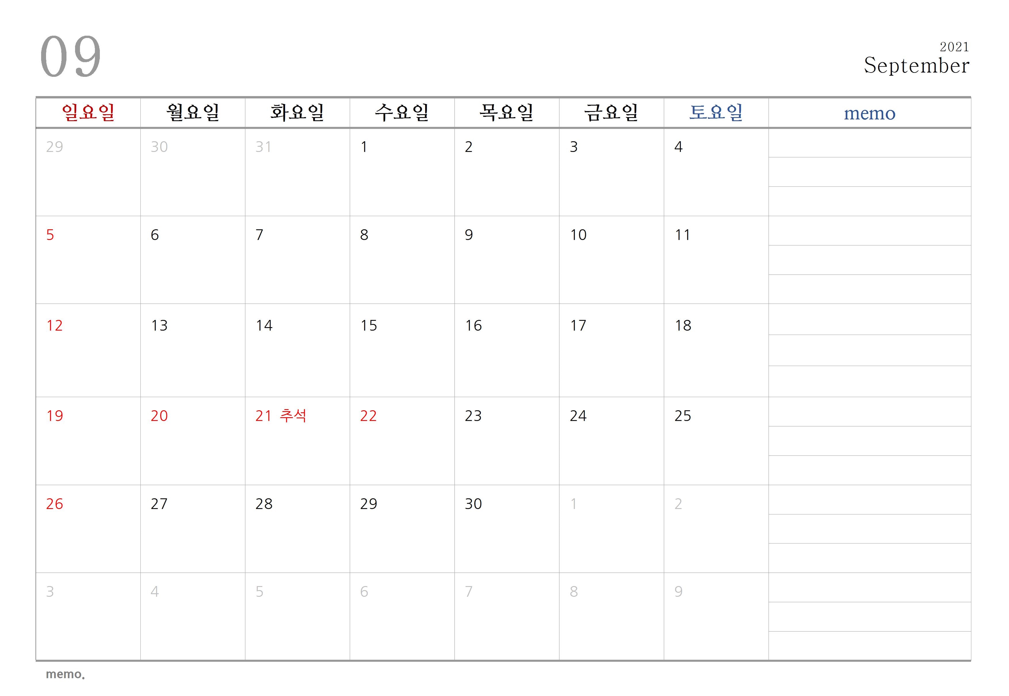 오른쪽에 있었던 메모란이 없으며, 오로지 달력만 있는 깔끌함 파일을 원하신다면 위에 첨부된 글을 방문하셔서 해당되는 한글 파일을 다운로드하시면 됩니다.