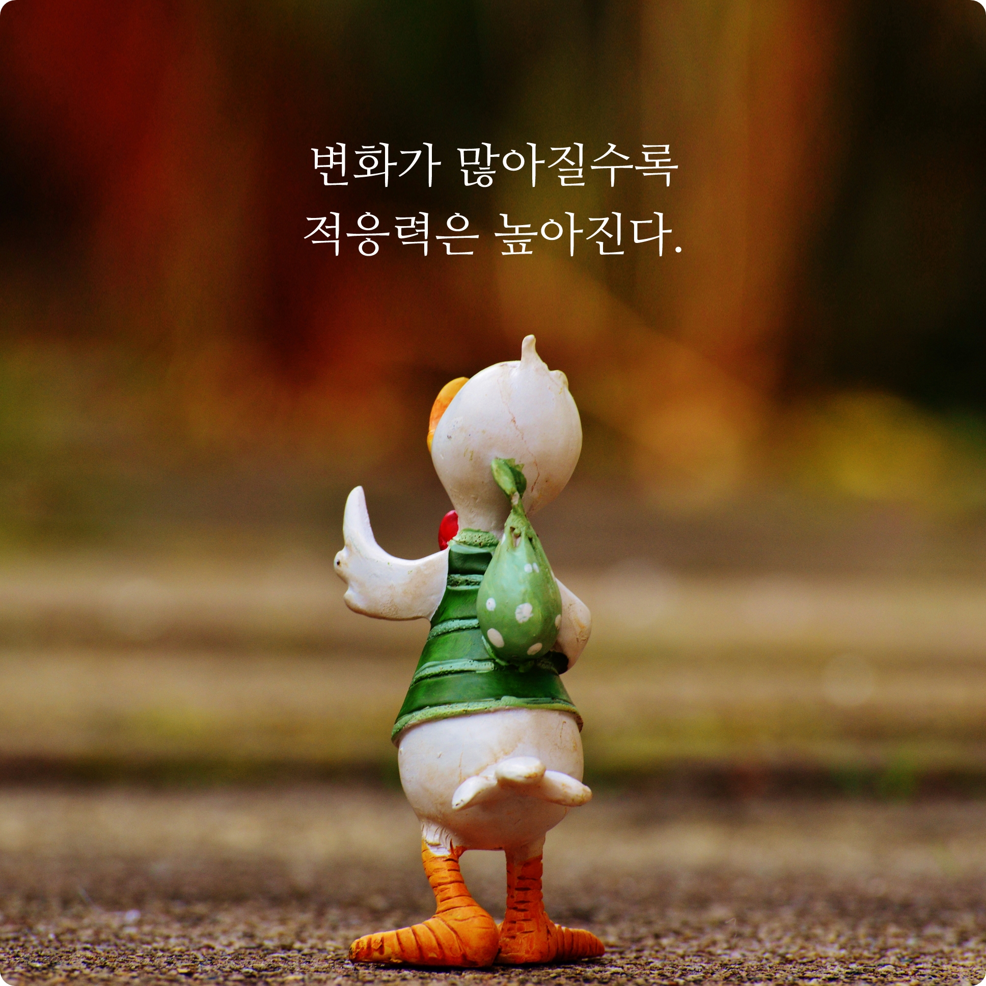 글자 수에 맞춘 변화관련 문구입니다. 여기에서 표현하고 싶은 것이 있습니다. 달라진 장소나 환경 또는 새로운 일과 사람들까지도 어떠한 변화가 될만한 상황에 놓일 수가 있는데요. 기존의 방식을 고집하여 그런 변화들을 기피하고 피하기보다는 그런 변화들에 끊임없는 도전하고 적응하며 이겨나가다보면 훨씬 인생도 훨씬 더 좋은 방향으로 나아가지 않을까요? 때문에 새로운 변화들에 도전을 하다보면 인생도 좋은 쪽으로 변화될 수 있다고 표현을 하였습니다.