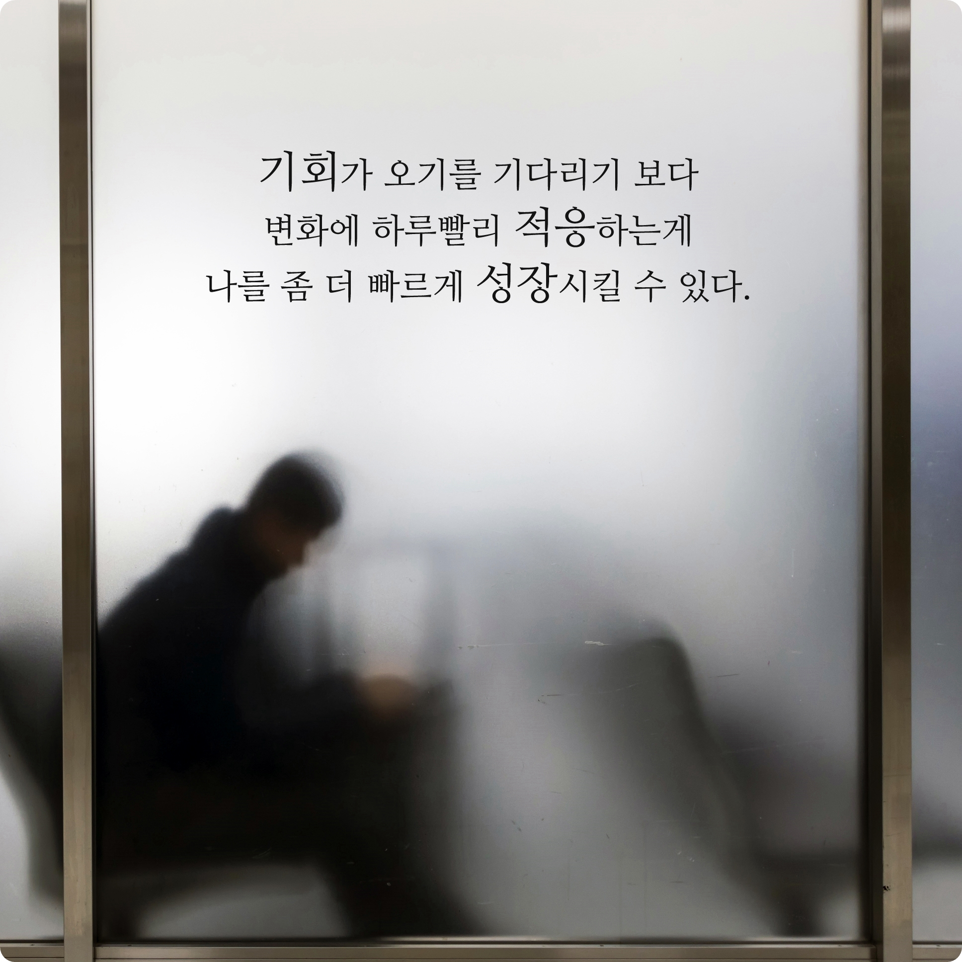 기회라는 것은 어느정도 준비된 과정들로 하여 찾아오는 것이 기회가 아닐까요? 아무런 이유 없이 행운처럼 다가오는 기회란 없지요. 마냥 기다리며 기회를 기다리기보다는 나 자신이 변화에 빠르게 적응을 하는 것이 내 성장을 위한 바람직한 자세입니다.