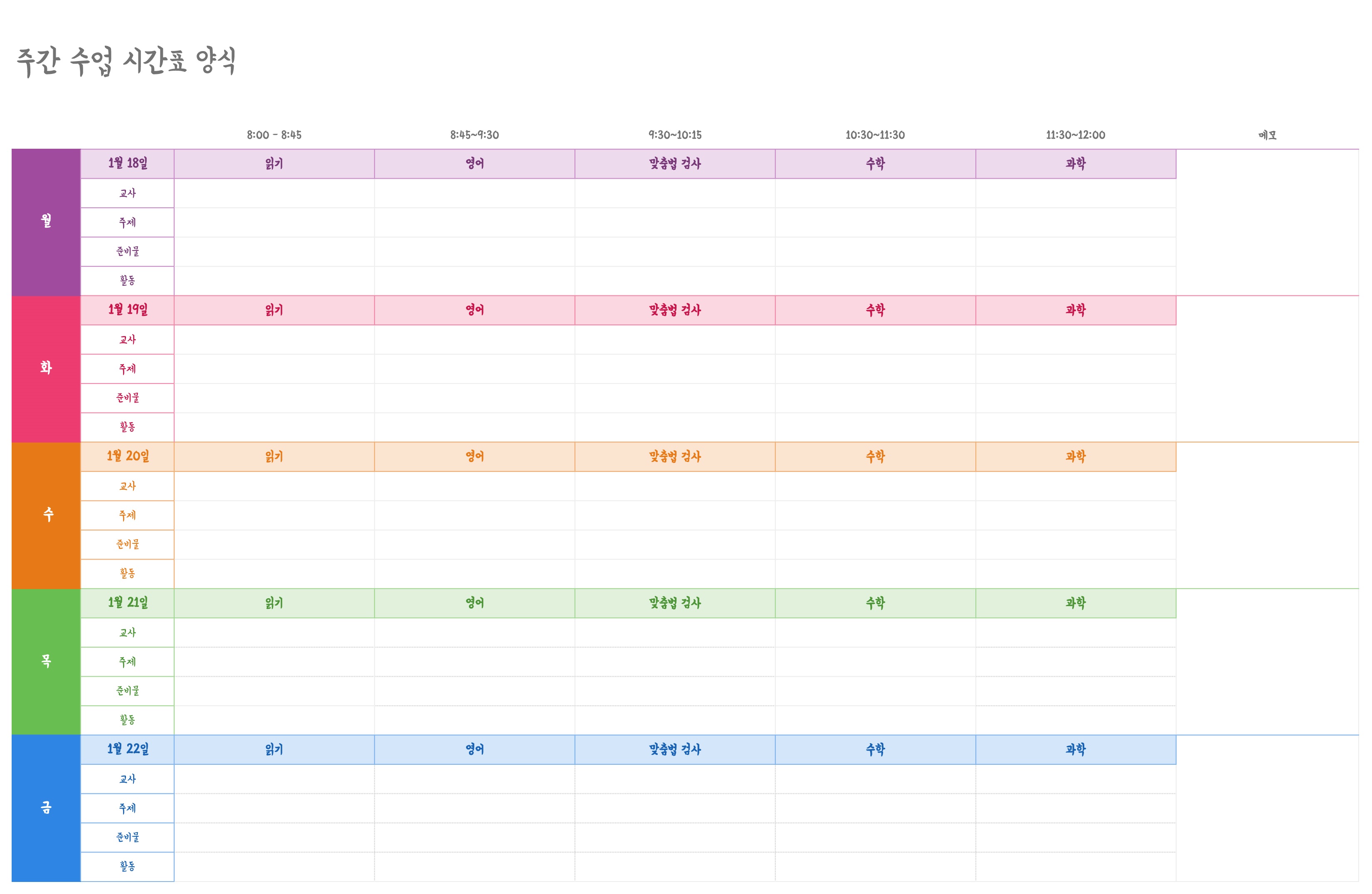 아이와 직장인 용도의 시간표 양식 다운 모음