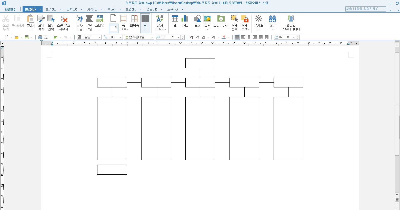 이것이 아래에 첨부될 이미지의 조직도 양식 한글 파일 열었을때 모습이며 마찬가지로 hwp 파일도 같이 첨부했습니다.
