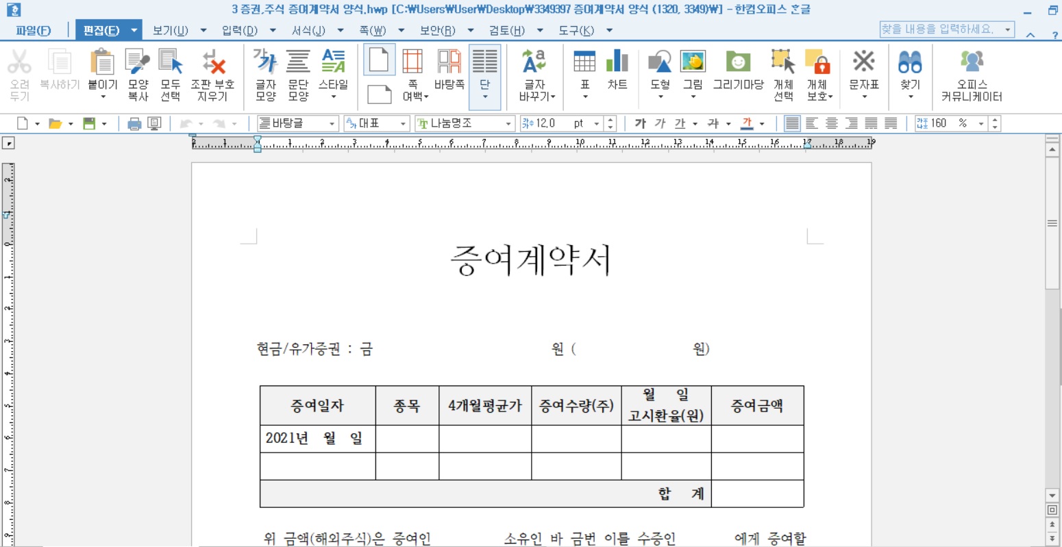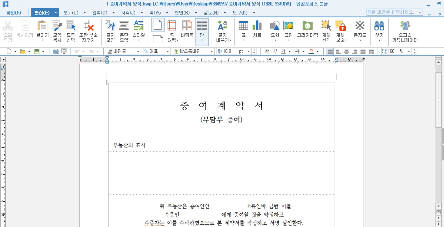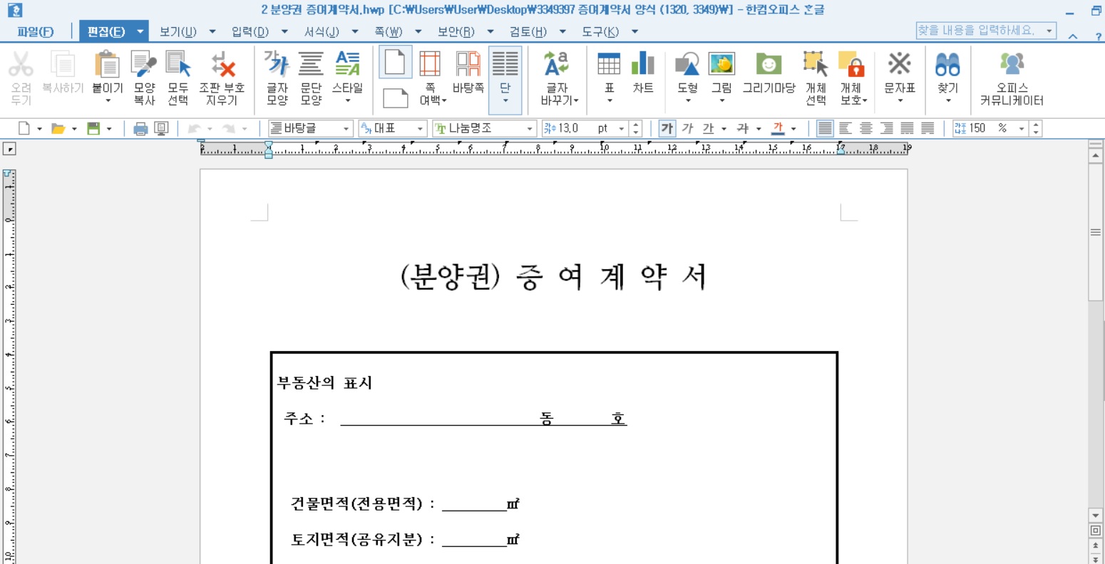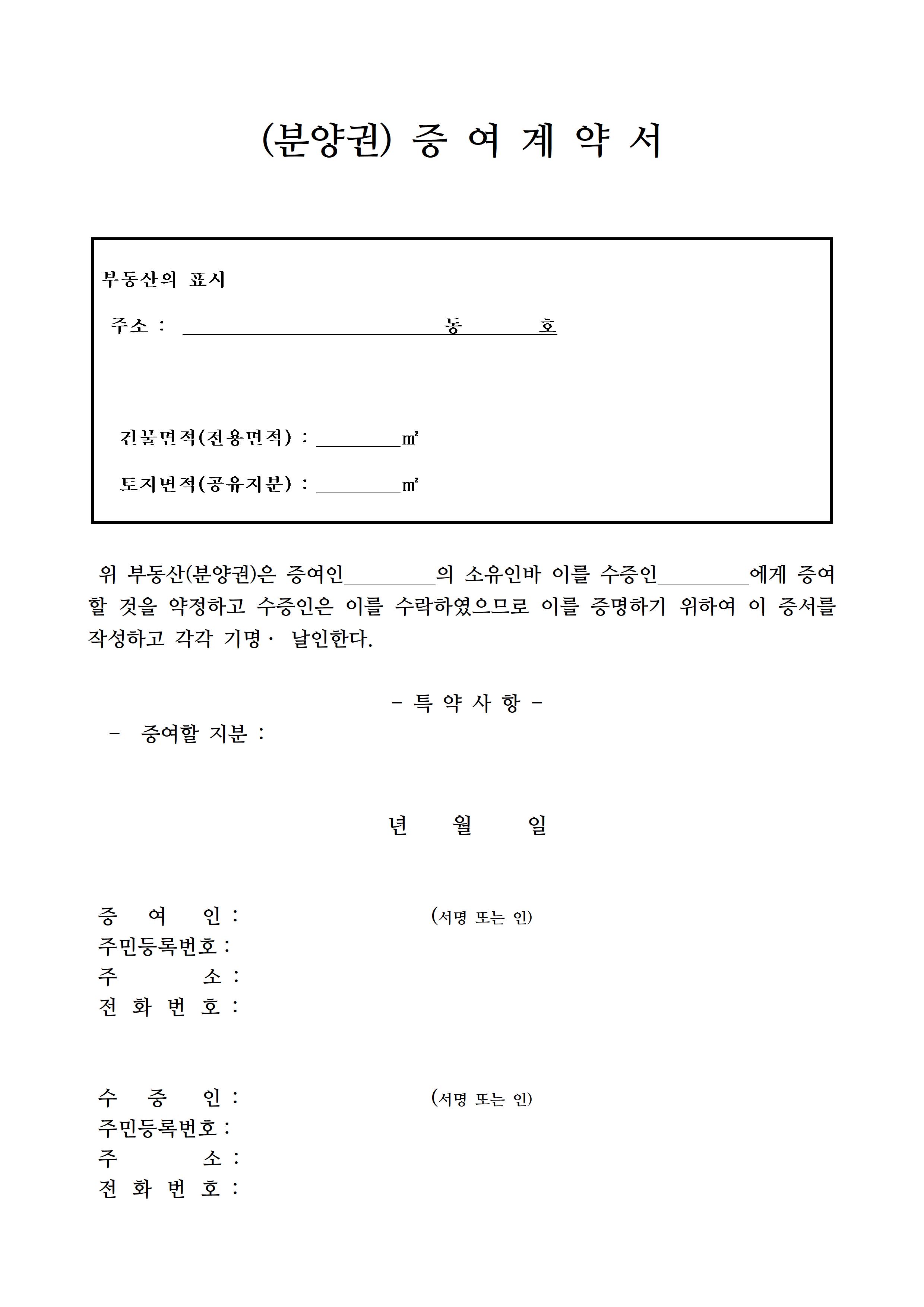 분양권 부동산 증여계약서 양식을 한글 서식으로 첨부했습니다.