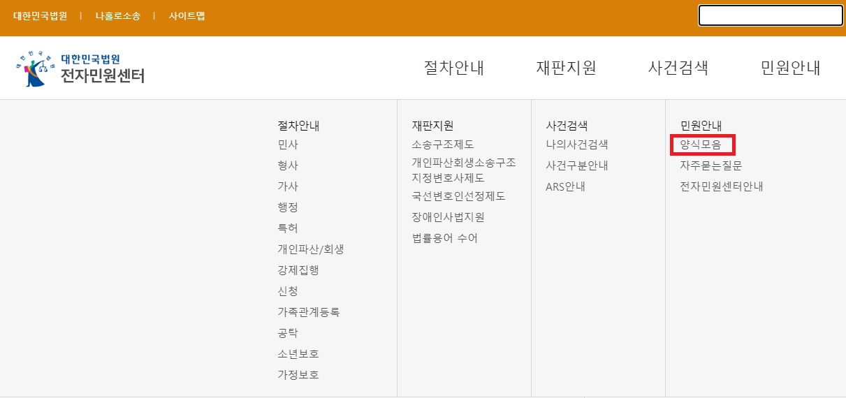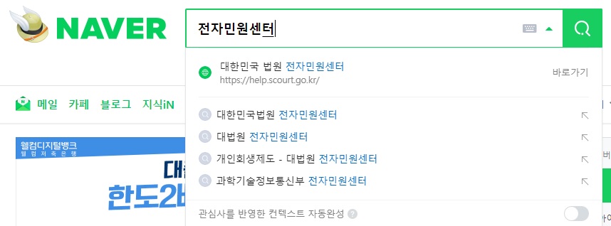 그러면 help.~ 이라고 시작되는 '대한민국법원 전자민원센터'라는 사이트가 뜹니다. 이곳에 방문하시면 됩니다.