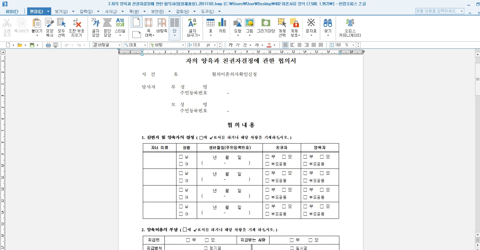 합의 이혼서류 양식 무료다운 받을 수 있는 파일을 각각 첨부했습니다.