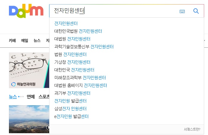 우선 네이버나 다음에 '전자민원센터'라고 검색합니다.