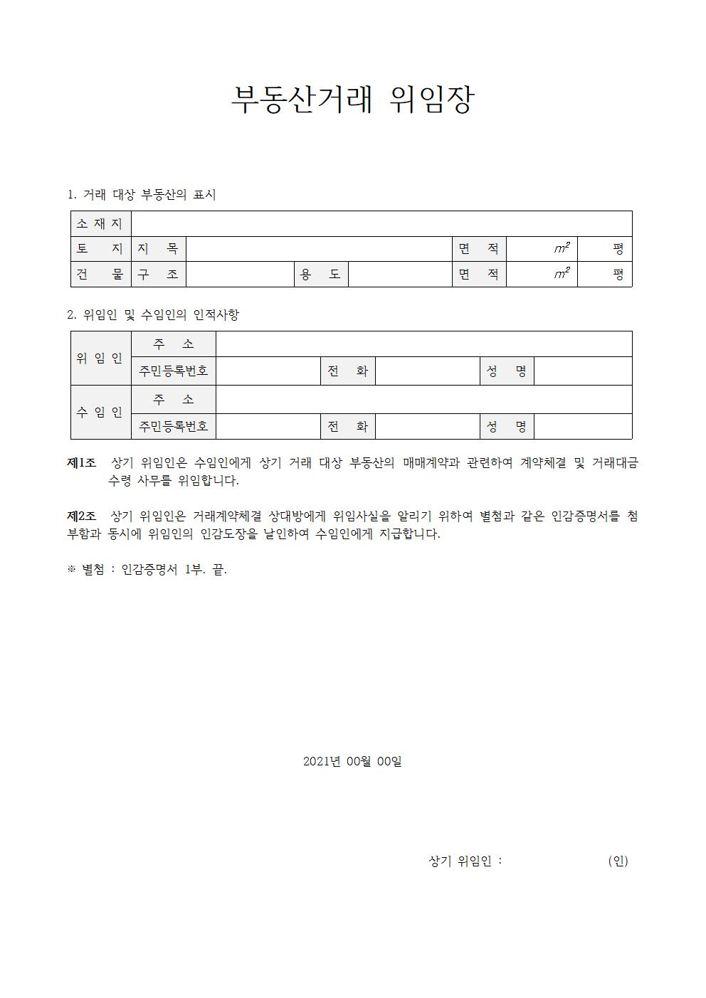 | 부동산 매매 등기 임대계약 거래 위임장 양식 (0) | 2021.03.19 |