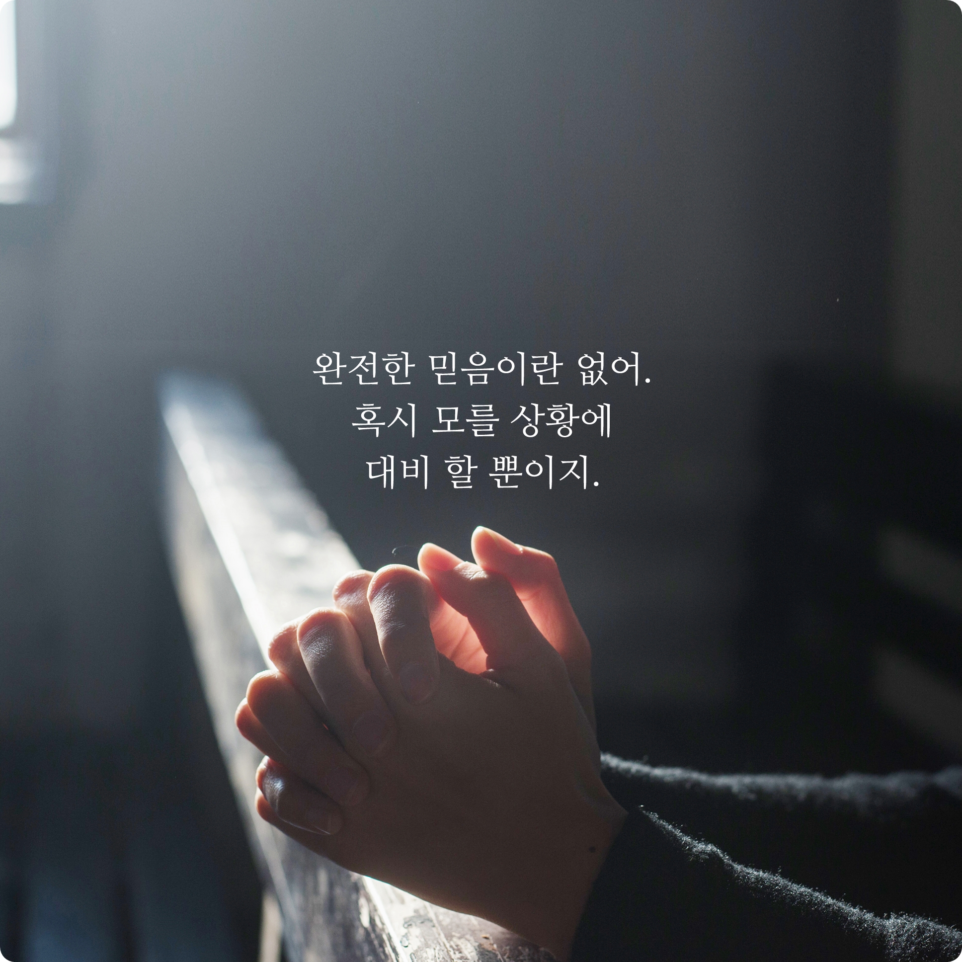세상에는 완전한 믿음이란 없어요. 내가 어떤 대상을 믿게되었던 충분한 계기도 마련이 되어야할 것이고 오랜 시간동안 동세월을 같이 보내면서 그런 믿음을 오랫동안 유지해야 할 뿐이죠.