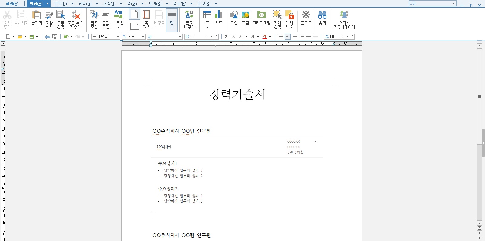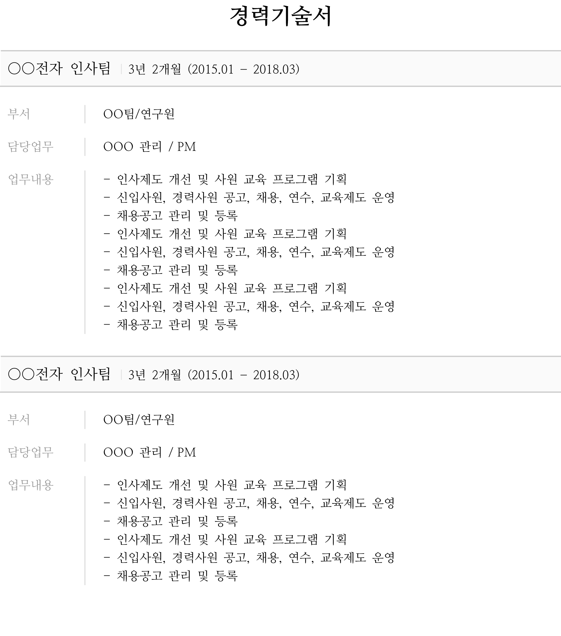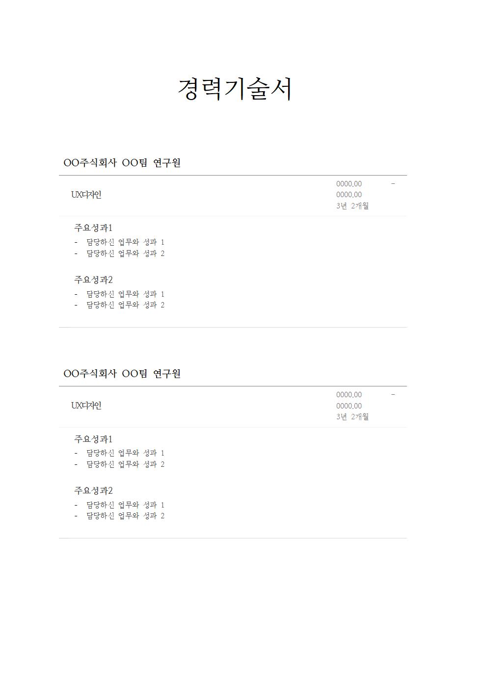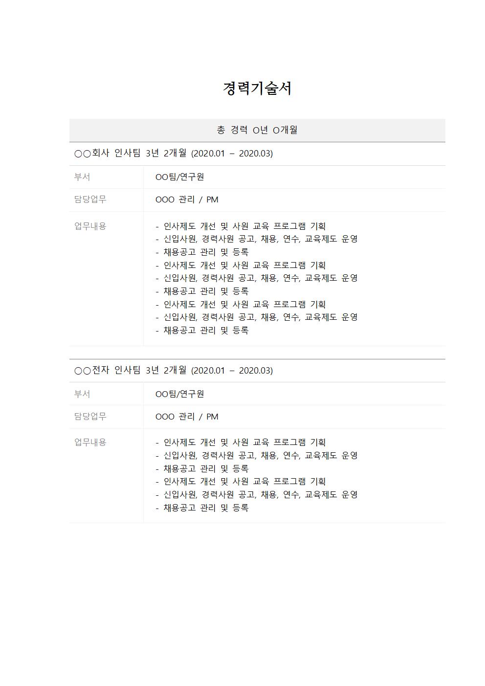 경력기술서 샘플 예시 (한글 파일 첨부)