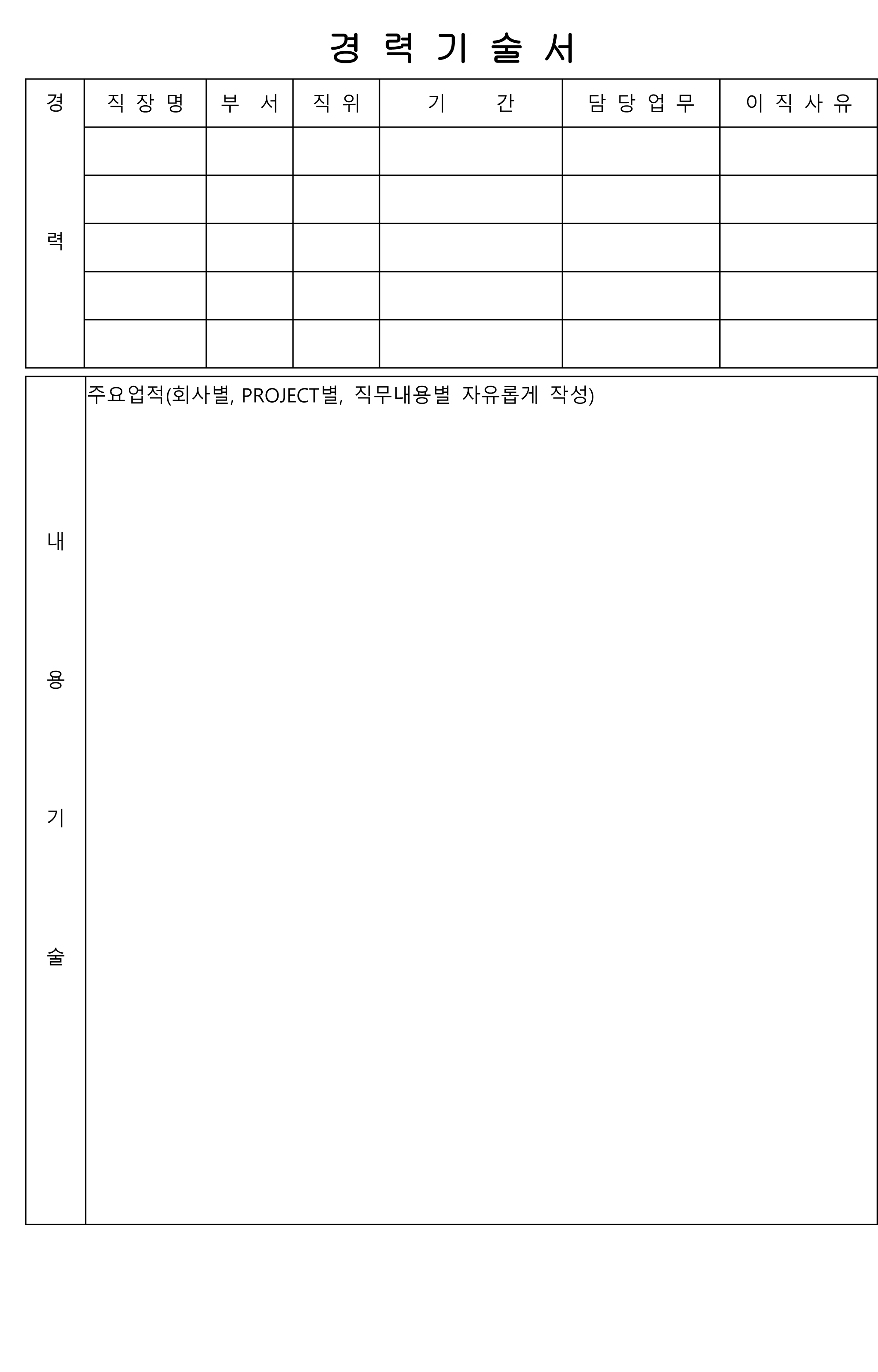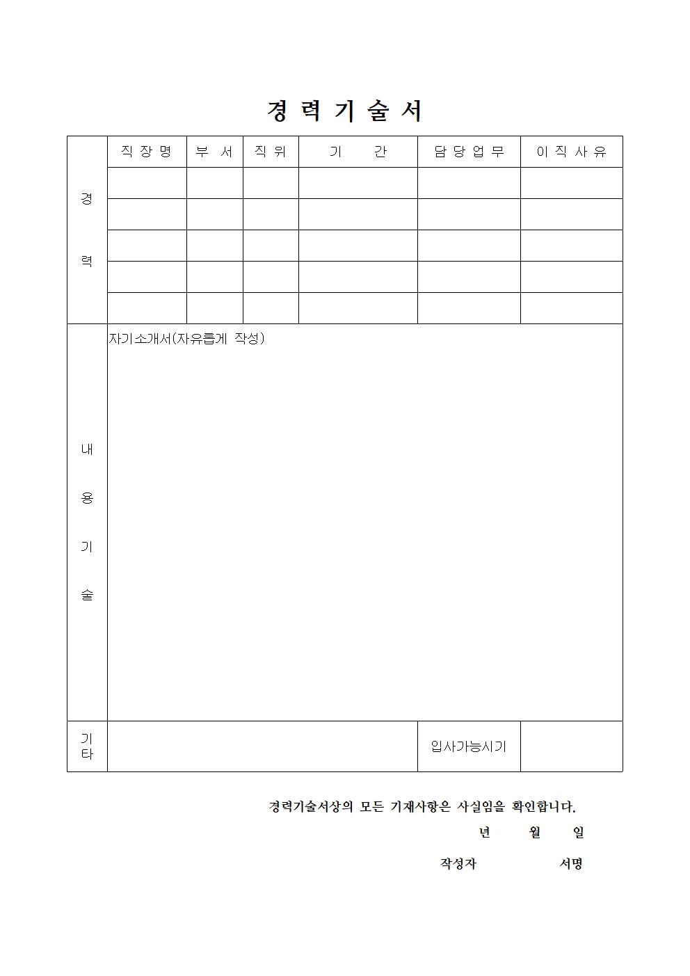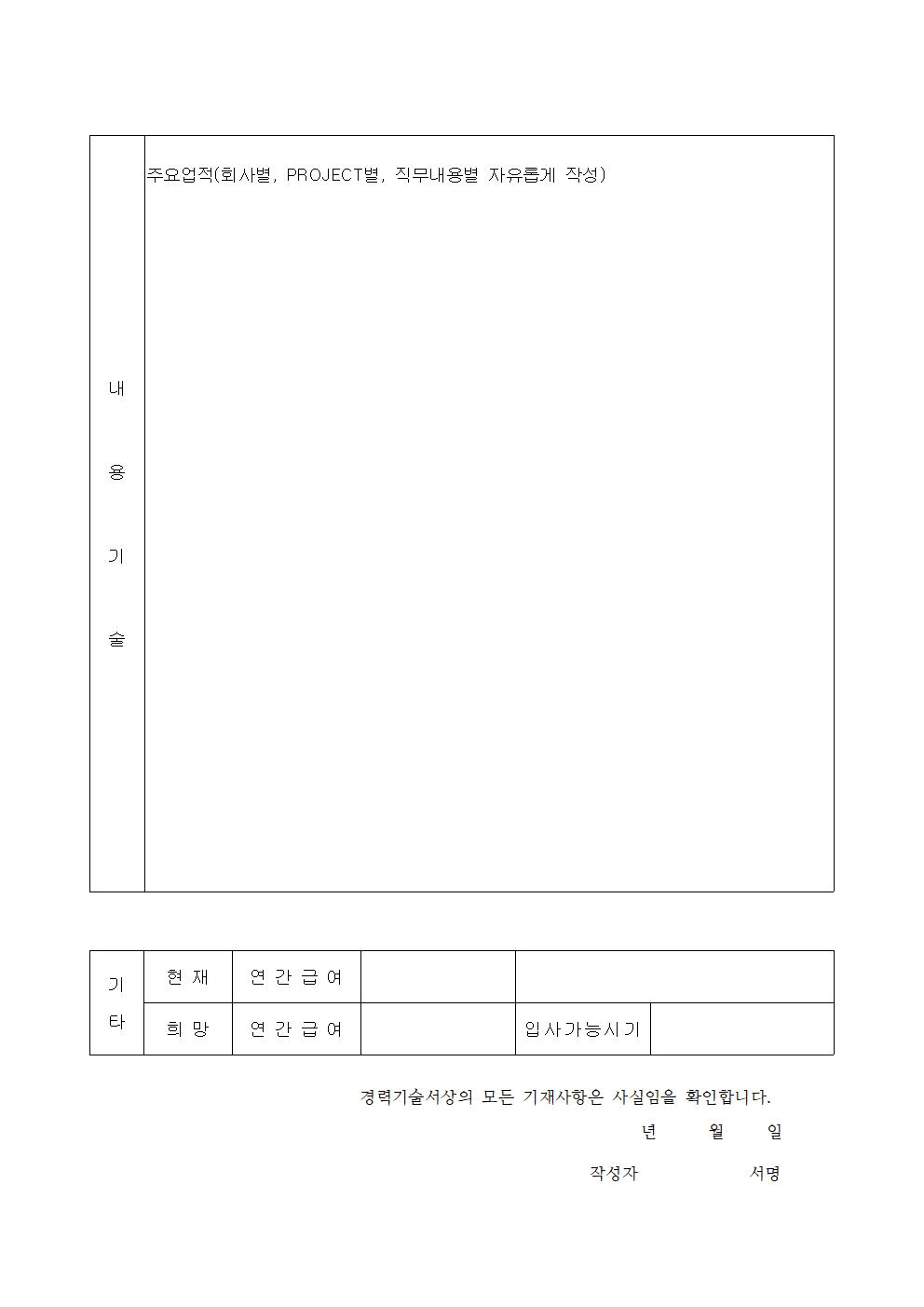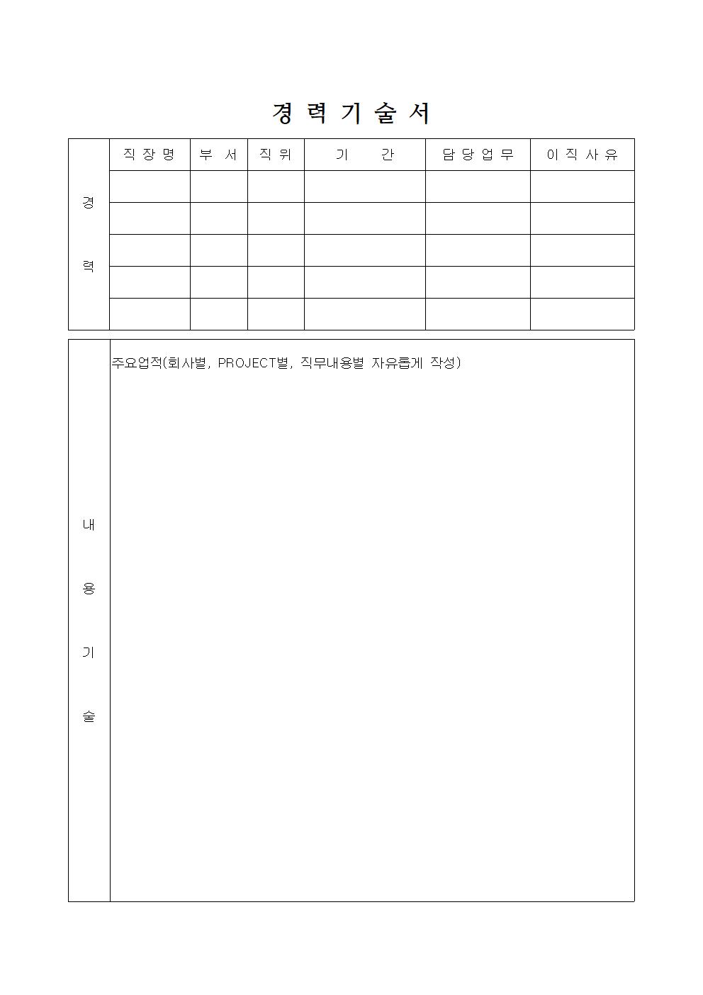 경력기술서 양식 (워드, 한글 파일 첨부)