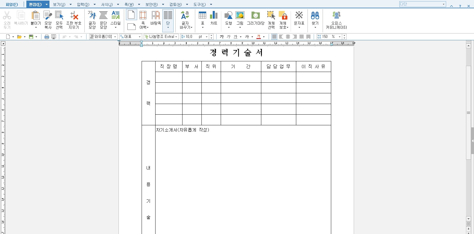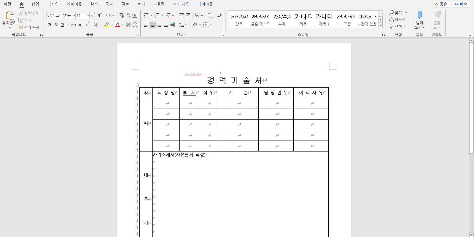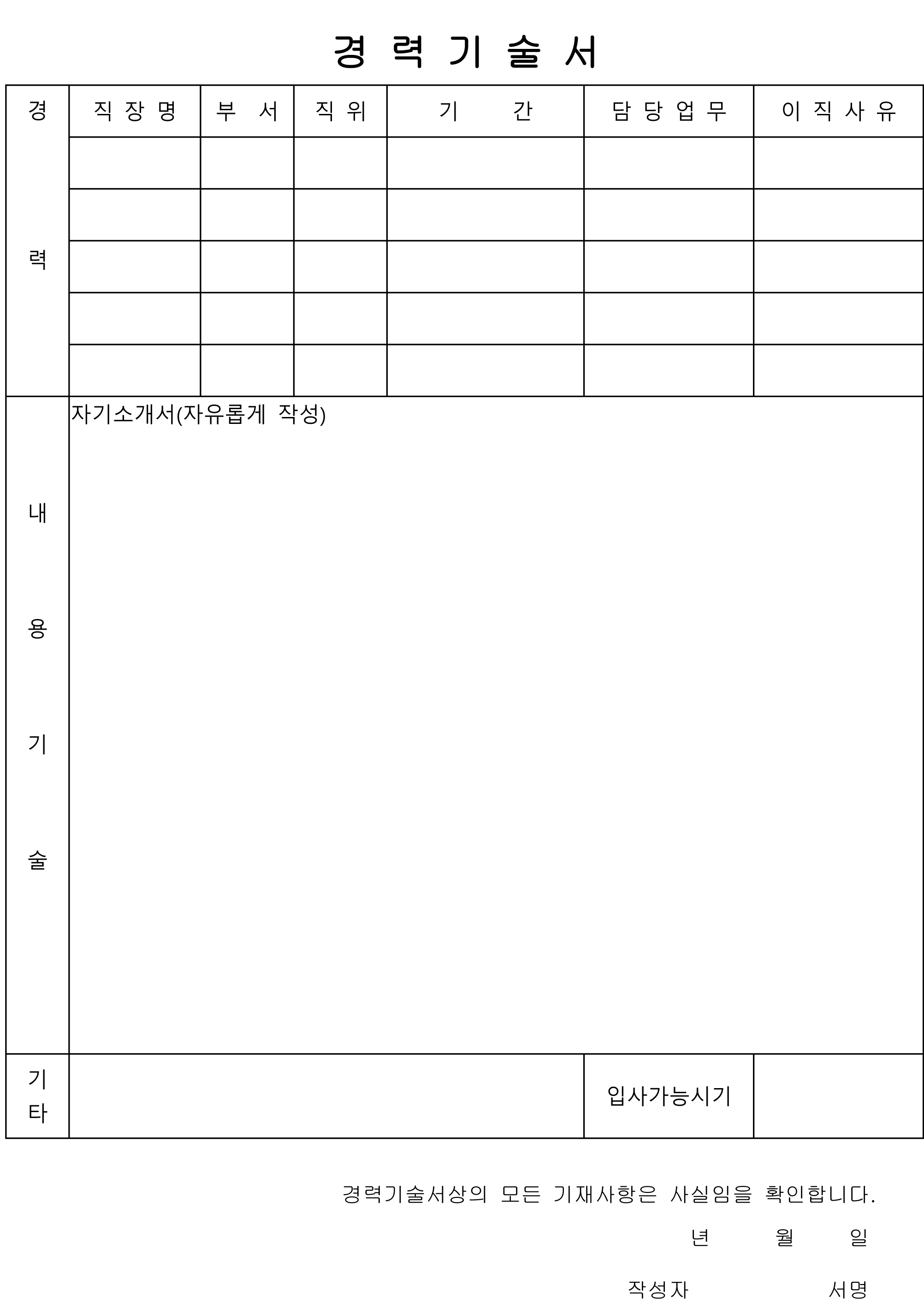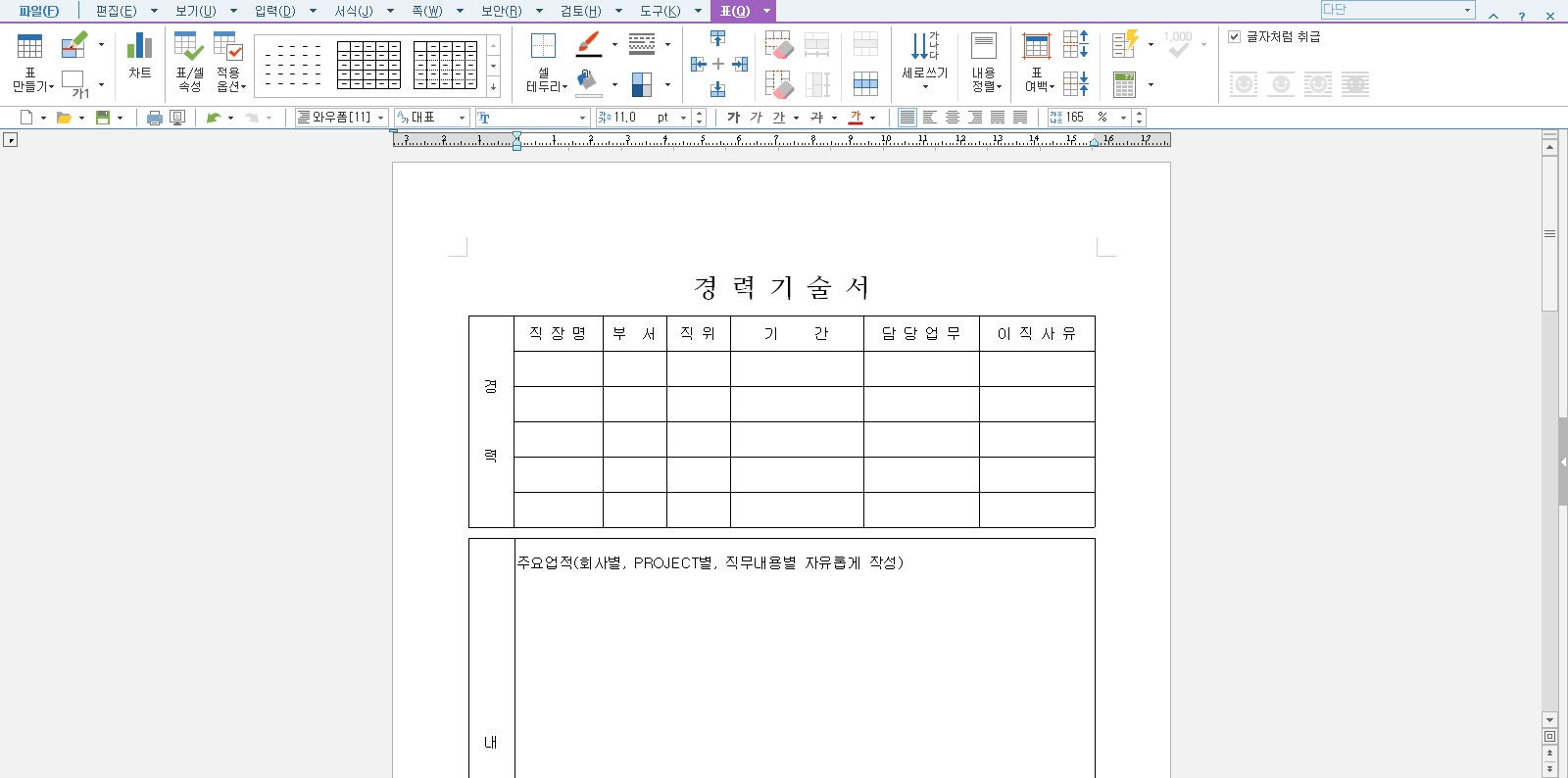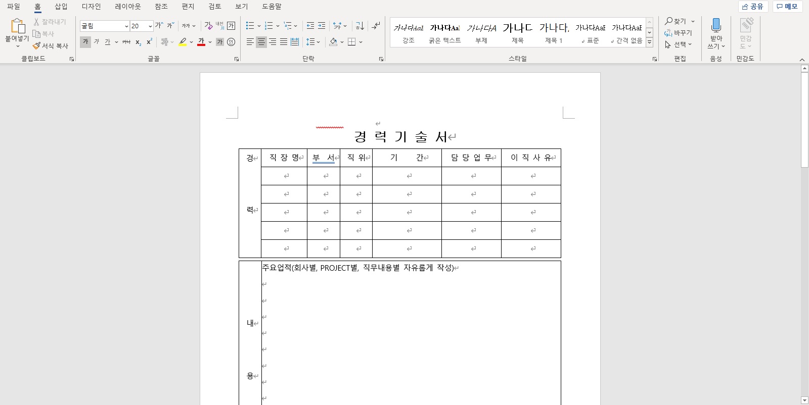 경력기술서 양식 (워드, 한글 파일 첨부)
