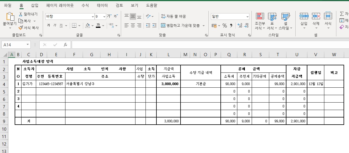 급여명세서 무료양식 및 급여대장 엑셀 서식 다운