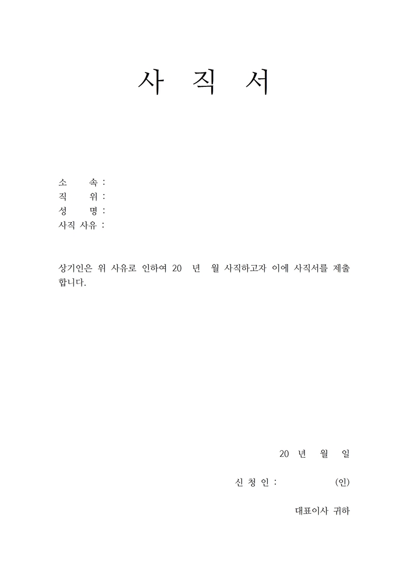 간결하면서 깔끔한 무료 사직서 양식