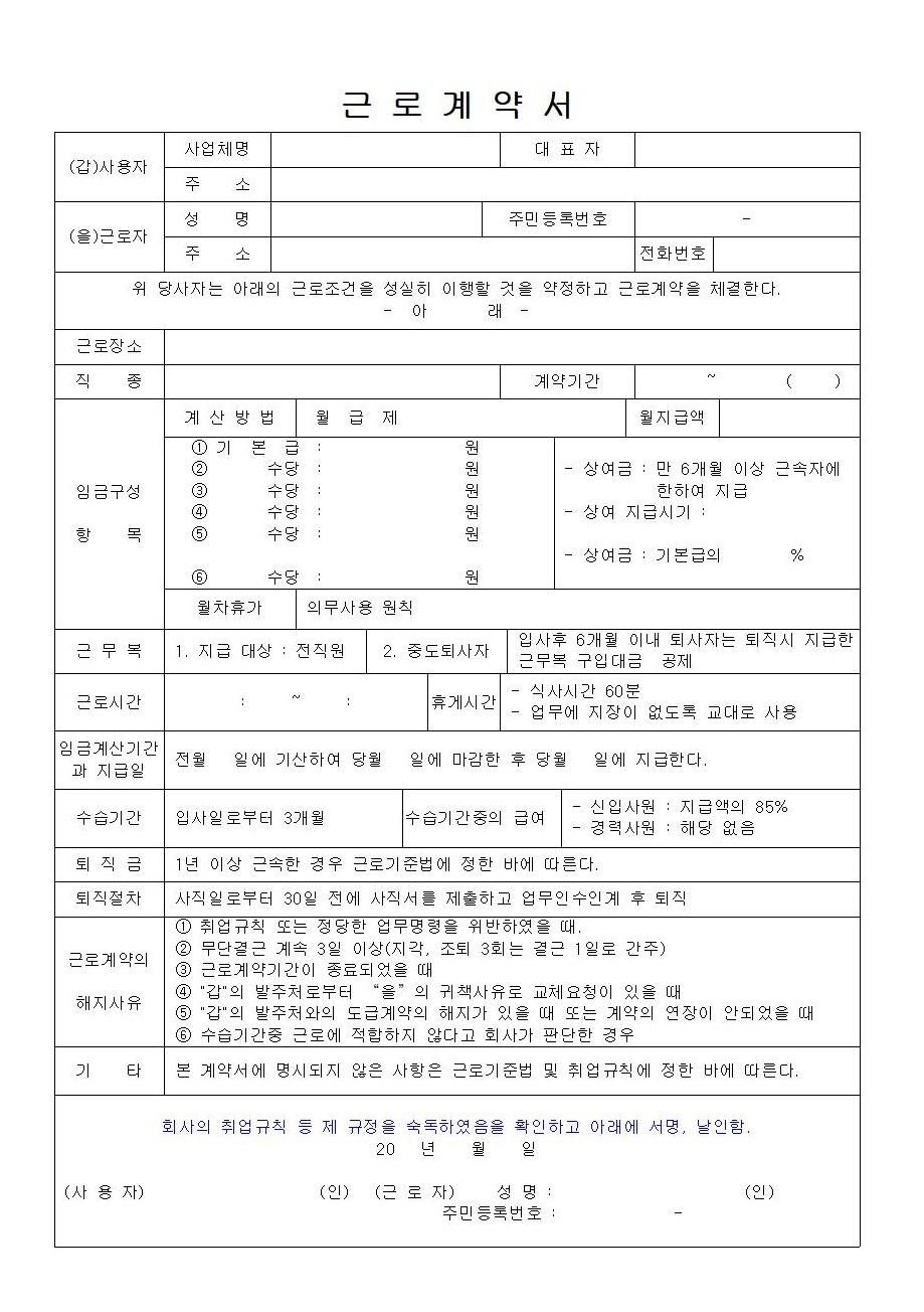 고용노동부 표준 근로계약서 양식 word pdf hwp 다운로드 - glelog.net