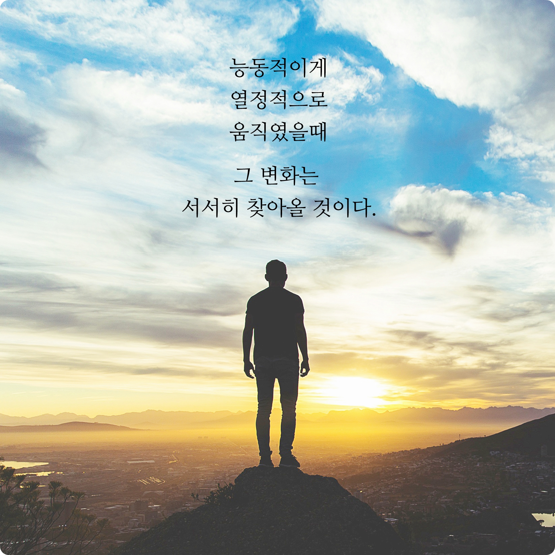 내가 어떤 시도를 스스로가 행하며 그 방향을 향해 열정적으로 최선을 다해서 움직였을때 그에 따른 결과나 변화는 반드시 찾아올 것이다. 단지 시간차이는 있을 수 있지만 무엇인가를 실천하고 나아가고 있다는 것은 조금씩 목표나 꿈에 서서히 가까워진다는 것이다. 비록 한 번에 많은 것들이 변화되지는 않겠지만 분명한 것은 그 결과들은 반드시 찾아올 것이라고 확신한다.