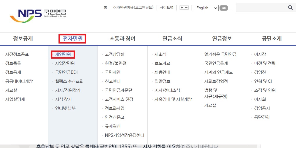 검색창에 '국민연금'이라고 치시면 nps국면연금 사이트가 바로 나옵니다.