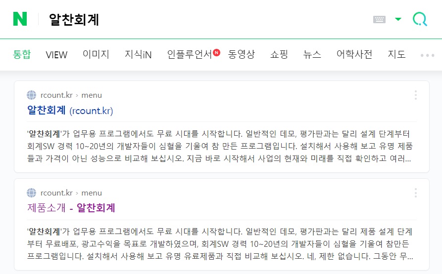 우선 검색창에 '알찬회계'로 검색합니다. 네이버로는 검색이 되는데 다음에서는 검색이 안되네요.