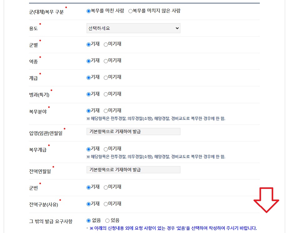 빨간 점으로 표시된 반드시 표기되어야 할 내용은 모두 '기재'를 누릅니다.