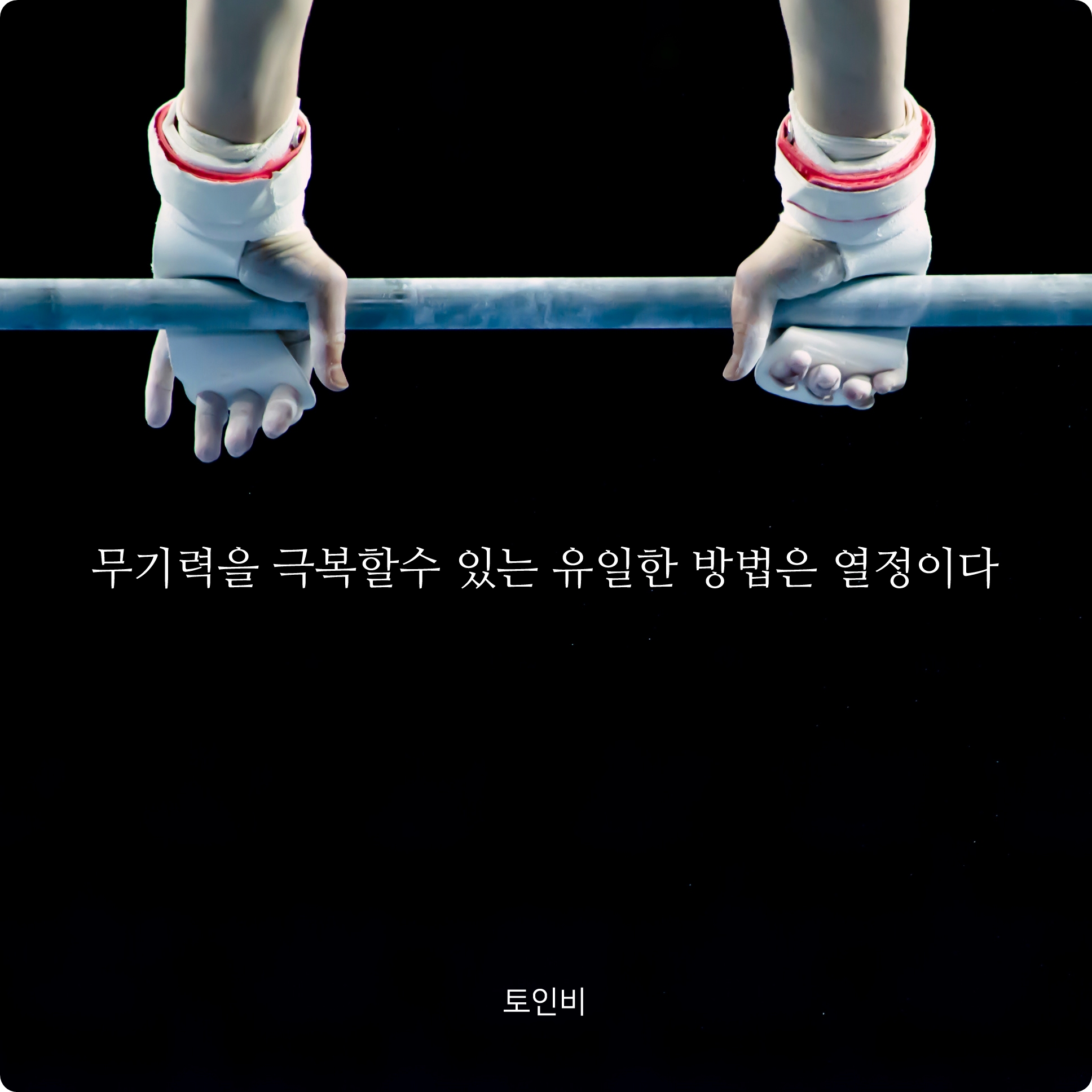 제가 좋아하는 토인비의 명언인데요. 저도 평소에 무기력을 종종 느끼고 있는 편이라 이런 무기력 증상이 보일때에는 이 명언을 떠올리곤 합니다. 하지만 더 중요한 것은 내가 열정적으로 보낼 수 있는 일을 하는 것이겠죠? 나는 열정적인게 아닌데 다른 사람들은 나를 보고 저 사람 참 열정적이다! 라고 생각이 들만큼 말이죠.
