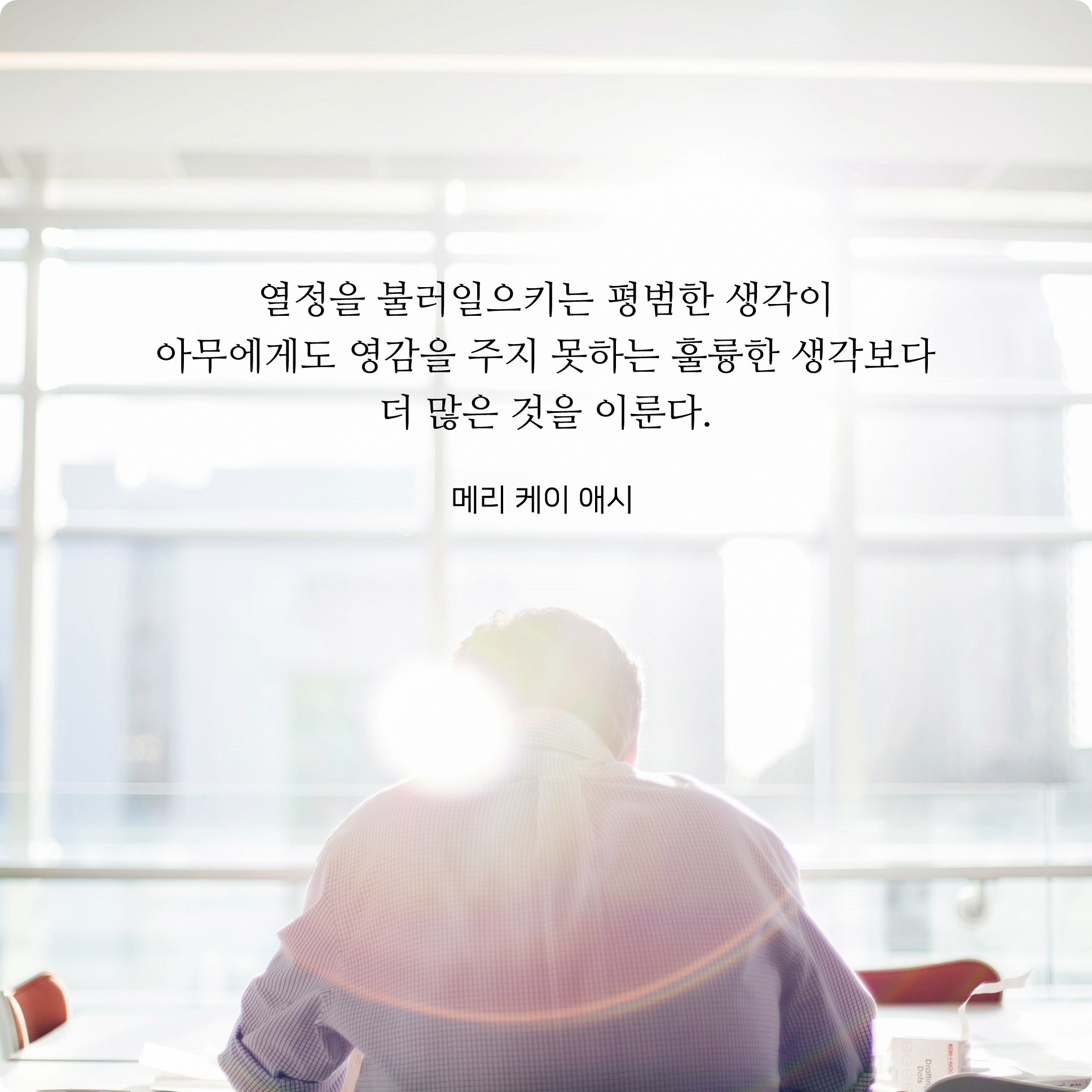 위대한 생각들을 갖고 있지만 따른 영감을 주지 못하는 일이라면 차라리 열정을 불러일으키는 평범한 생각이 더 크고 많은 일을 수행할 수 있다는 그런 뜻인데요. 차라리 평범한 생각보다도 나에게 영감이 되어서 열정이 생길 수 있는 일을 하는 것이 성공가능성을 높일 수 있는 그런 생각이 아닐까 싶습니다.