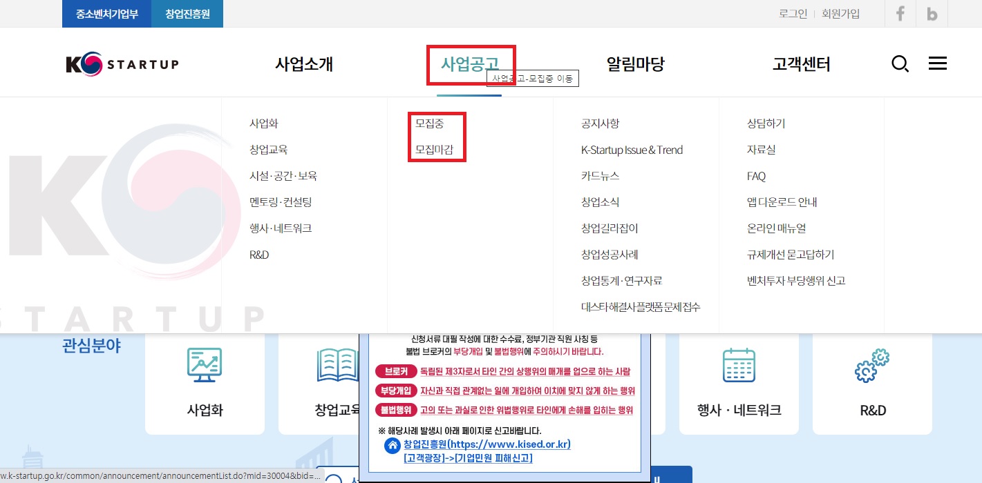 위의 k 스트타업 홈페이지를 방문하거나 검색창에 '케이 스타트업', 'K 스타트업'으로 검색한 뒤 사이트를 방문합니다.