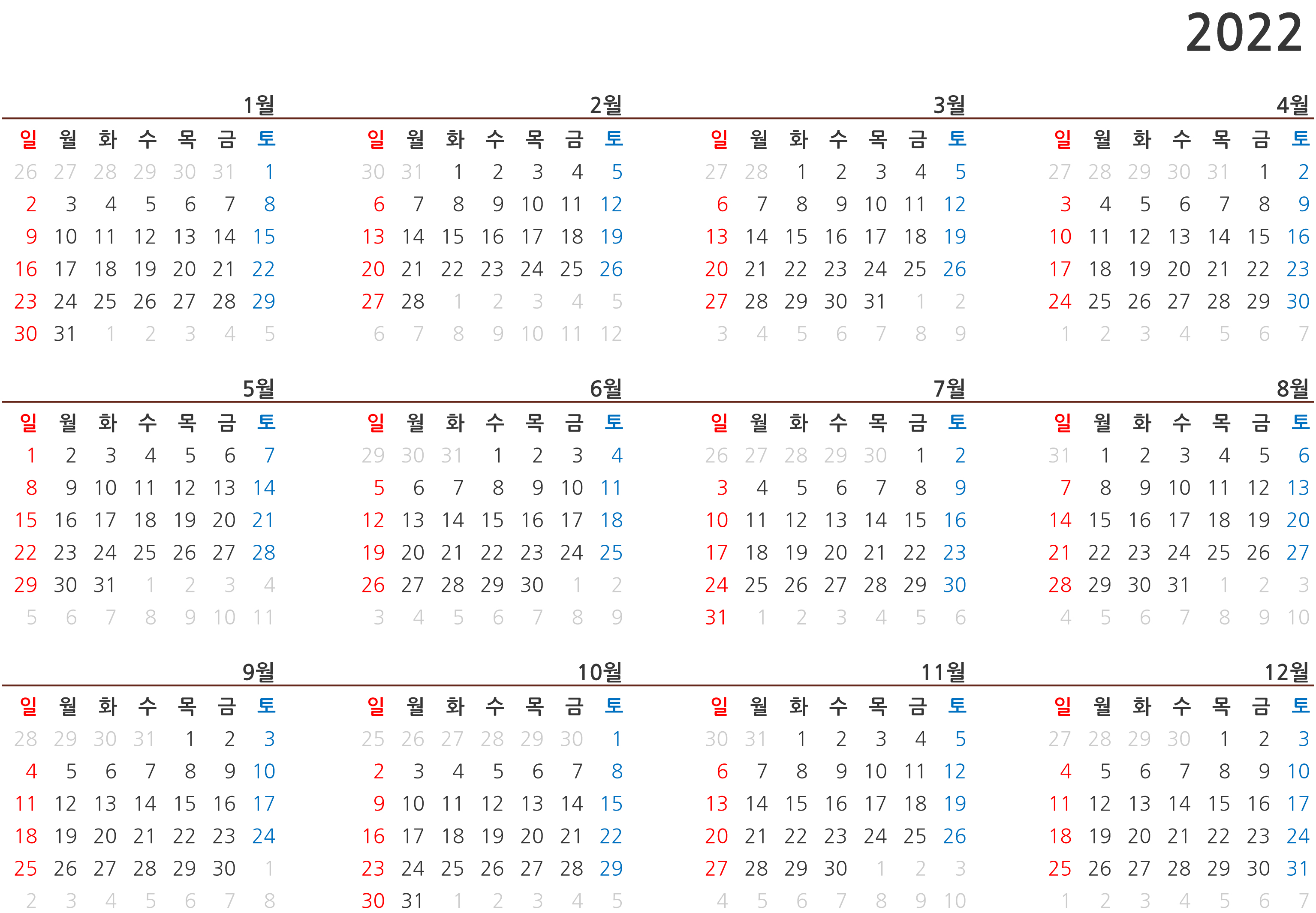 평생 쓸수있는 2022년 1년 연간 전체 달력 엑셀 xlsx 파일