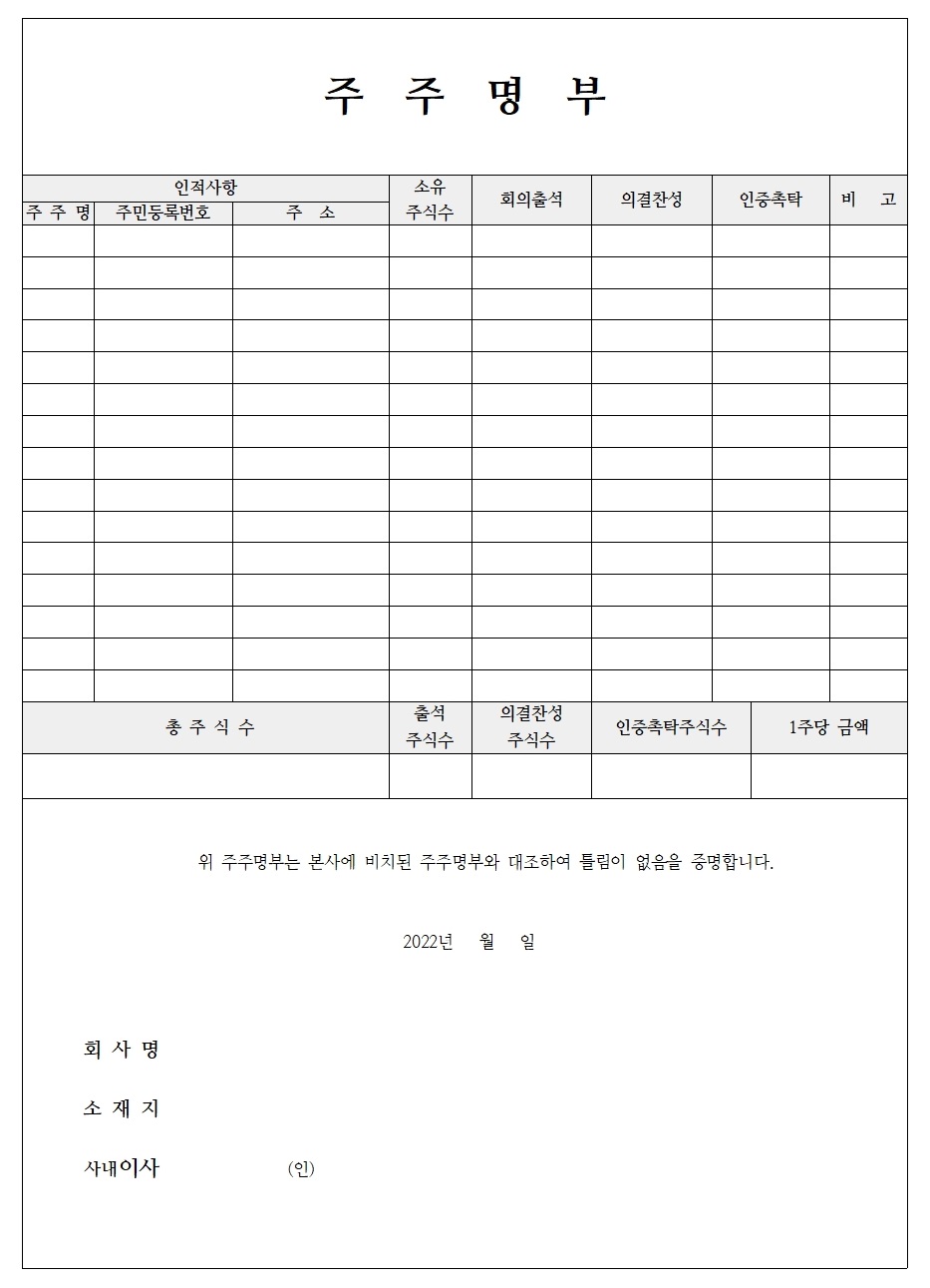 | 공증 서식 법인 주주명부 양식 (0) | 2022.01.05 |