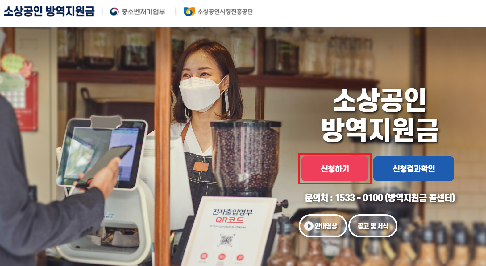 3 소상공인 방역지원금 신청 홈페이지