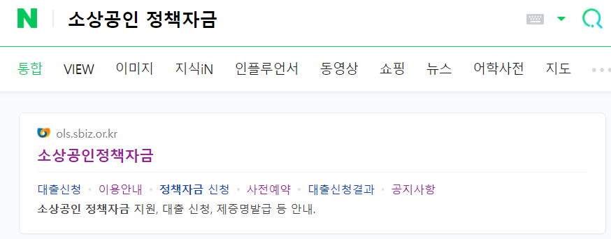 마찬가지로 구글과 네이버에도 같이 검색을 했을 때 동일하게 '소상공인정책자금' https://ols.sbiz.or.kr/ 사이트가 바로 뜨게 됩니다.