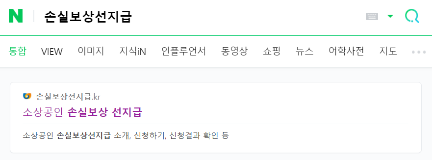 한 번에 들어가고자 하시는 경우에는 네이버 검색창에 '손실보상선지급'이라는 사이트가 바로 뜨니 위와 같은 검색어로 들어가셔도 됩니다.