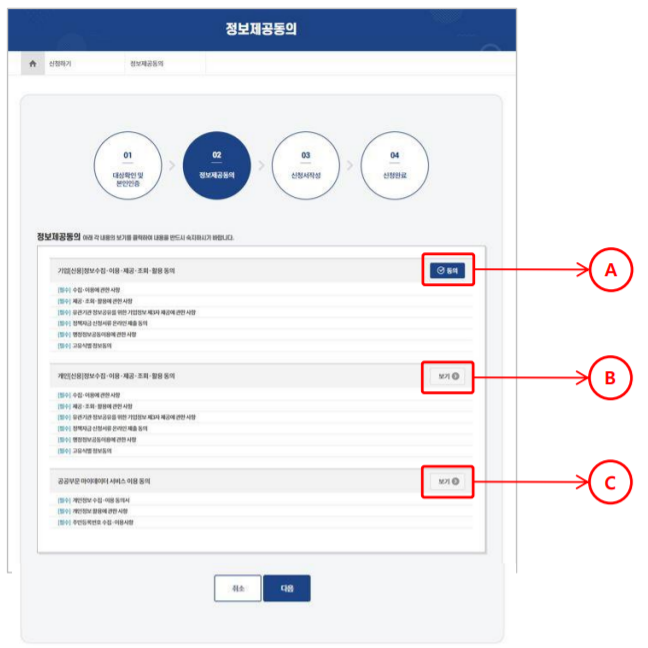 동의함에 체크를 한 후 1번으로 표기된 전체 동의를 누릅니다.