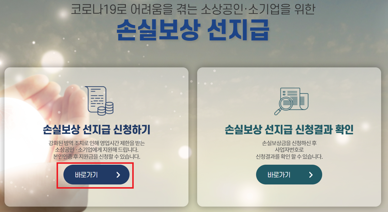 소상공인 손실보상 선지급 신청 홈페이지 들어가는 방법입니다.