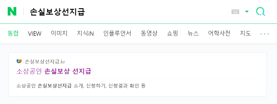 그러면 이번 19일 수요일부터 신청 접수를 받고 있는 아까 처음에 봤던 손실보상 선지급 신청하는 홈페이지로 바로 이동이 됩니다. 또 다른 방법으로는 네이버 검색창에 '손실보상선지급'으로 검색하시면 됩니다.