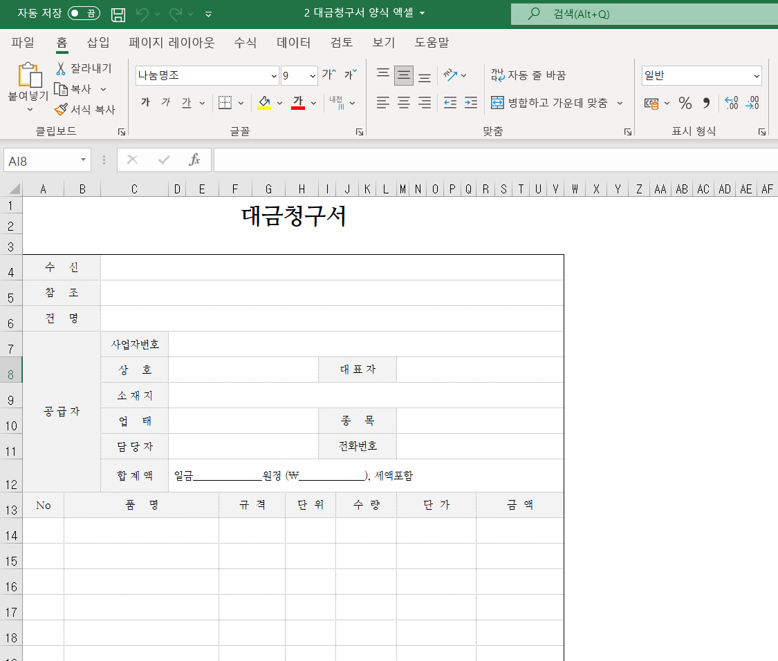 한글 워드 엑셀 3가지 서식으로 첨부한 대금청구서 양식 원본 파일입니다.